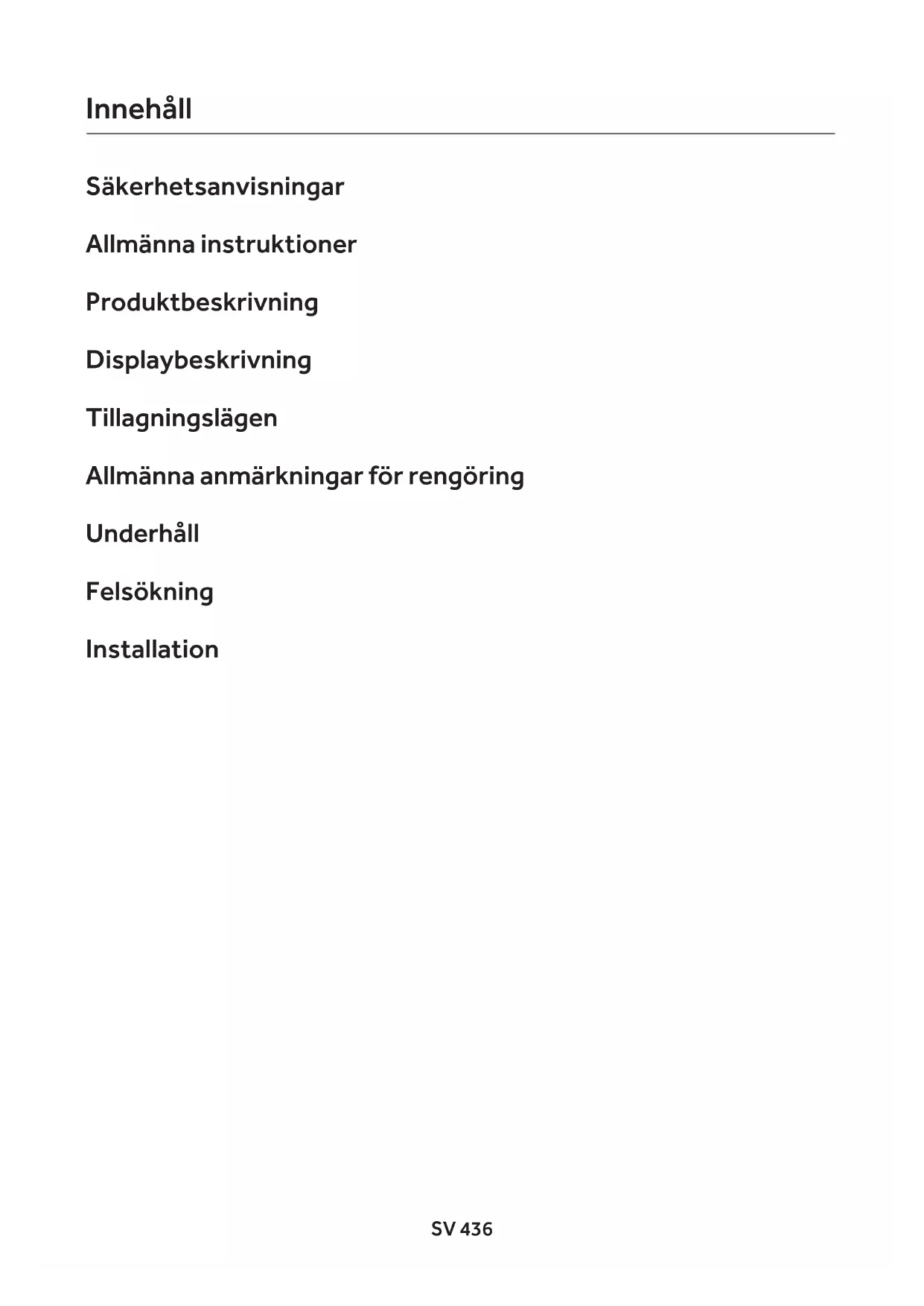 - Ugnen måste vara avstängd innan de avtagbara delarna tas ut. Efter rengöring, sätt tillbaka delarna enligt instruktionerna. SäkerhetsanvisningarSV 438