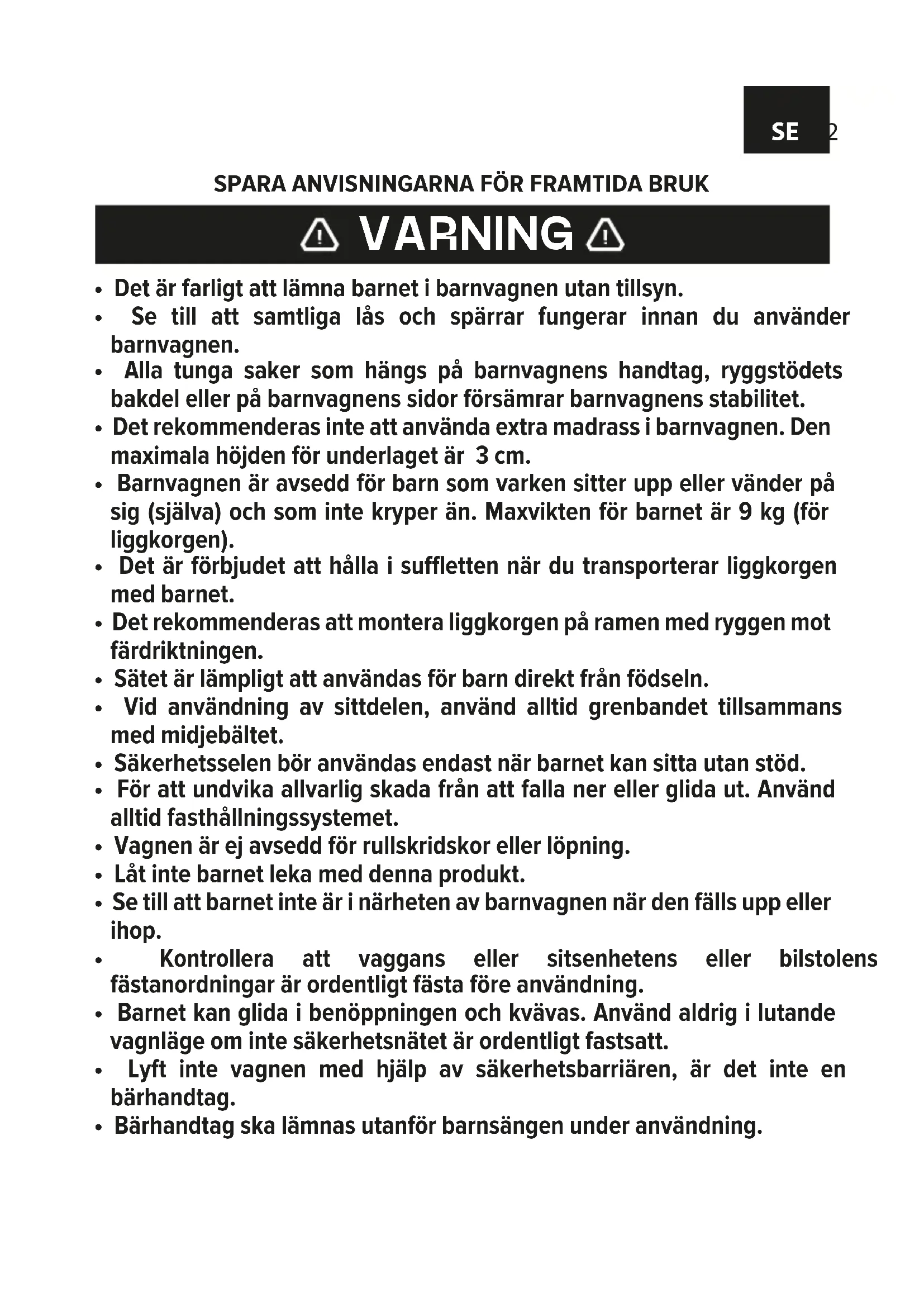 - Vagnen är ej avsedd för rullskridskor eller löpning.