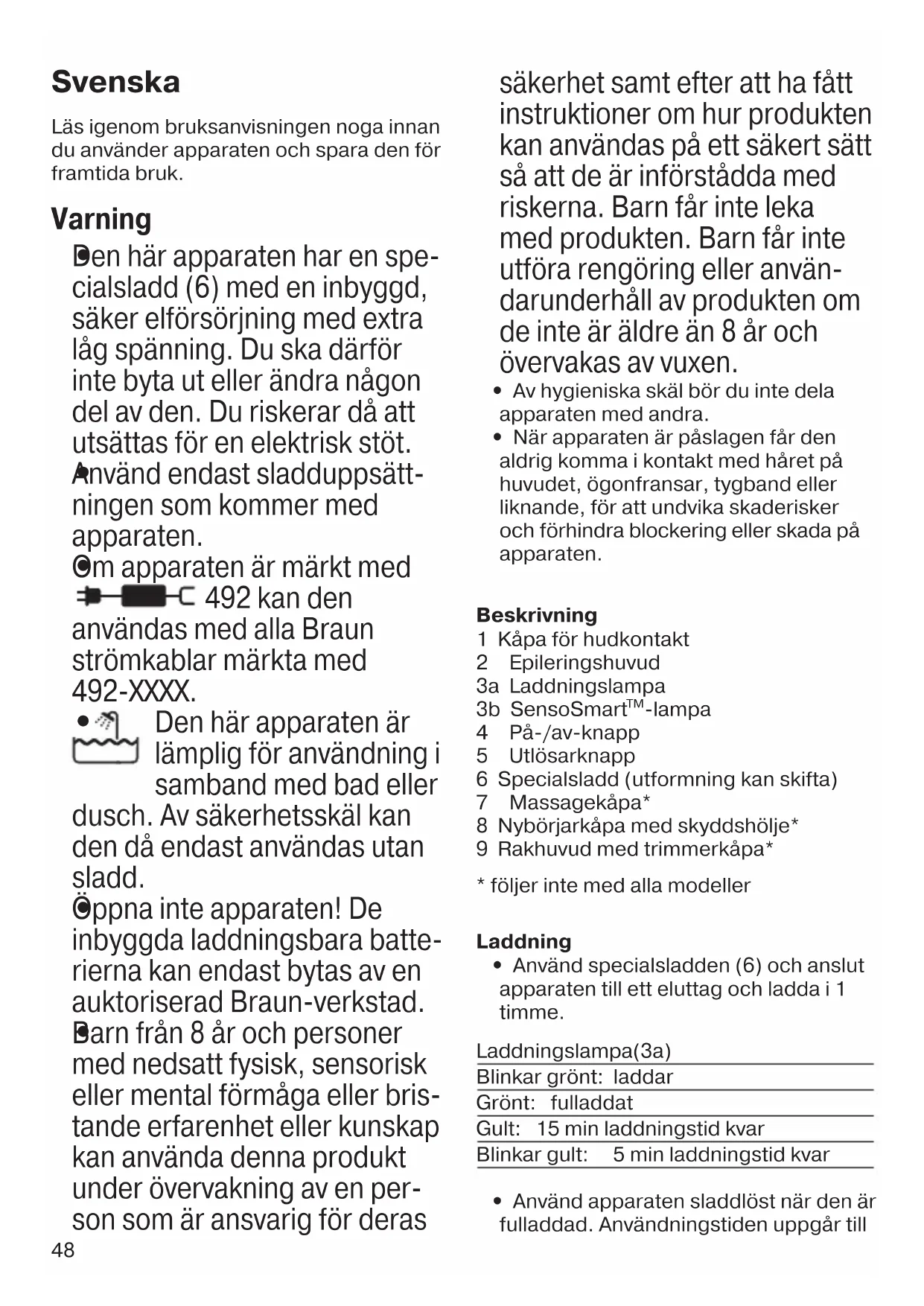 Öppna inte apparaten! De inbyggda laddningsbara batte- rierna kan endast bytas av en auktoriserad Braun-verkstad.