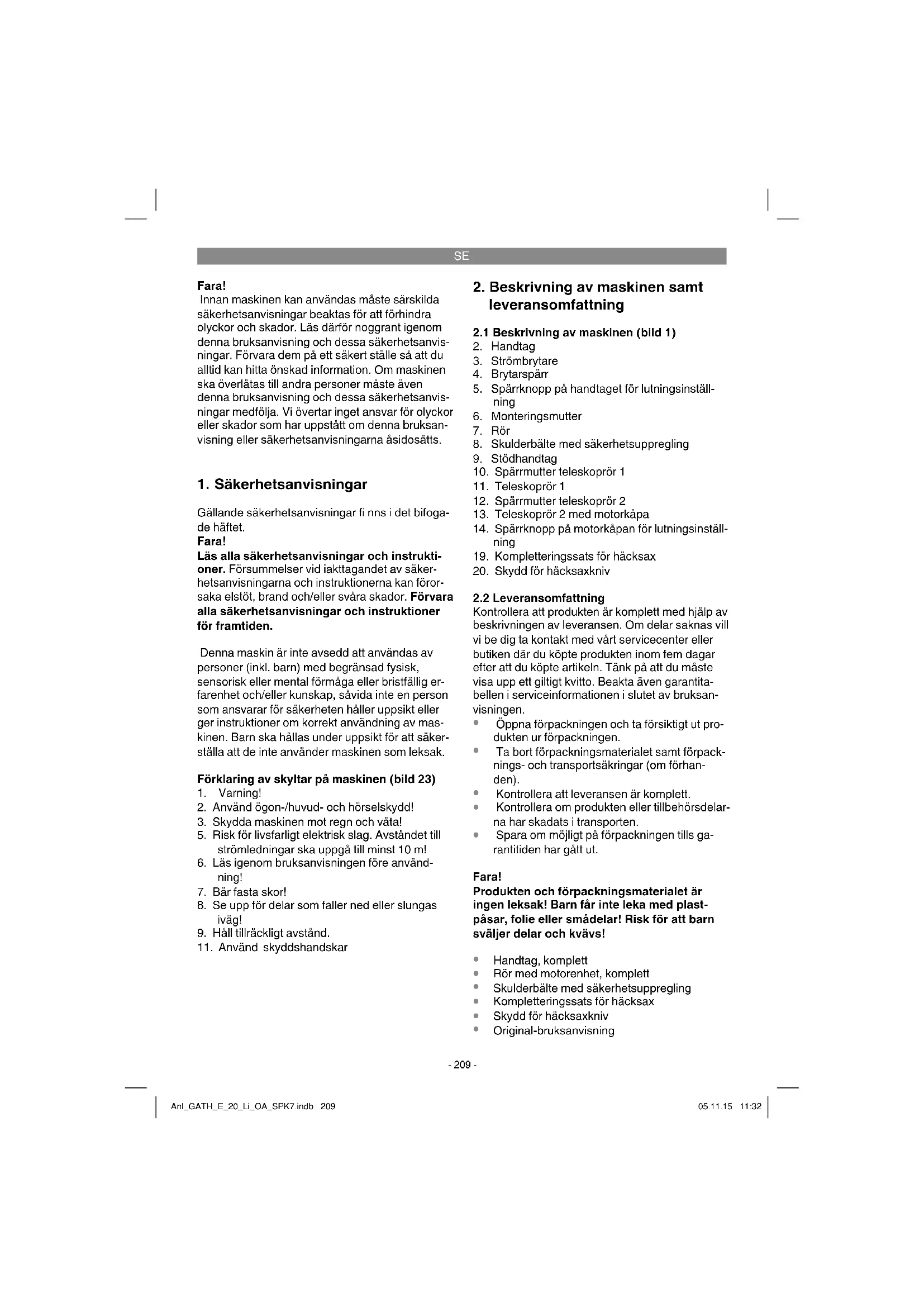1. Säkerhetsanvisningar