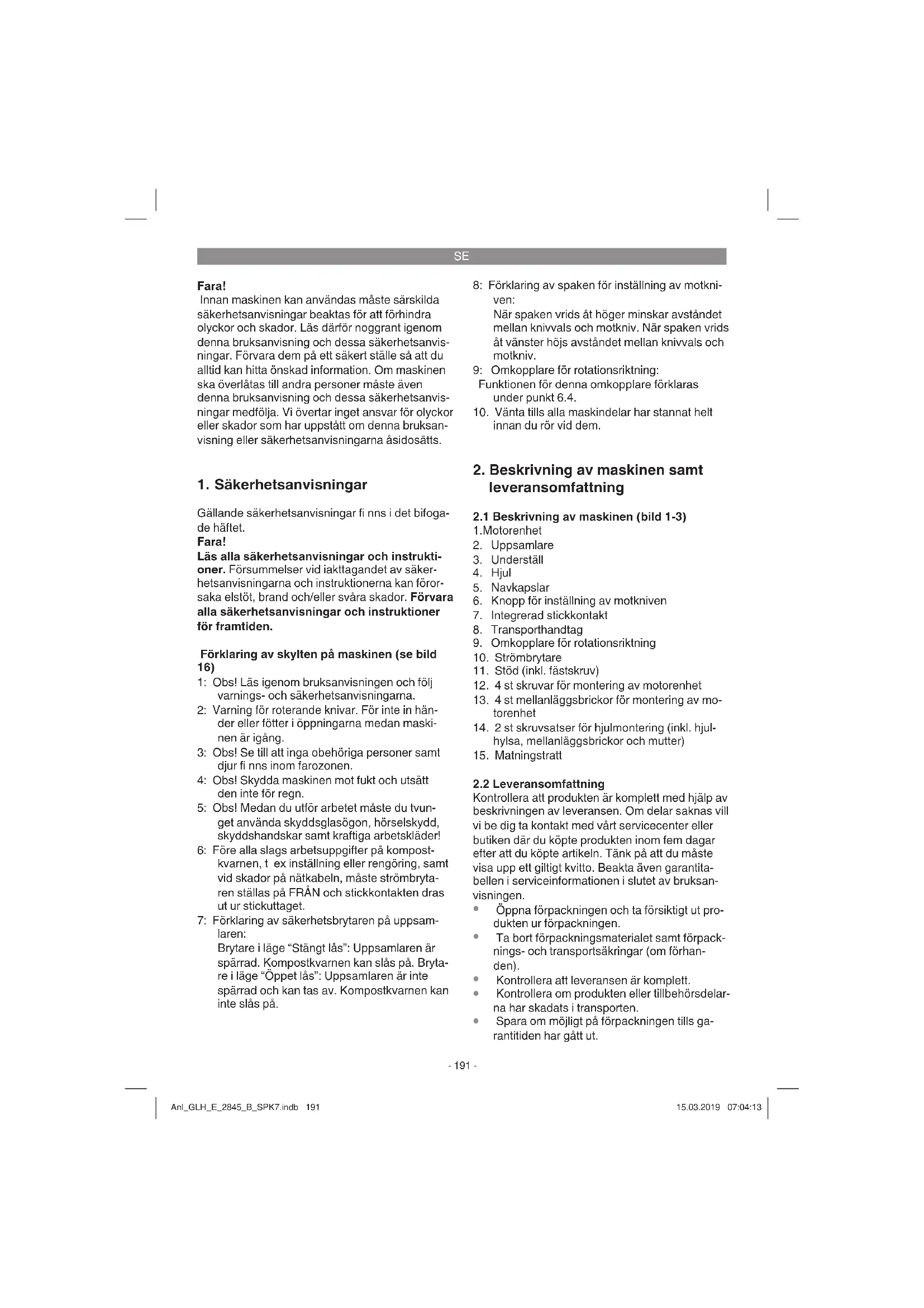 Spara om möjligt på förpackningen tills ga- rantitiden har gått ut. Anl_GLH_E_2845_B_SPK7.indb 191Anl_GLH_E_2845_B_SPK7.indb 191 15.03.2019 07:04:1315.03.2019 07:04:13SE