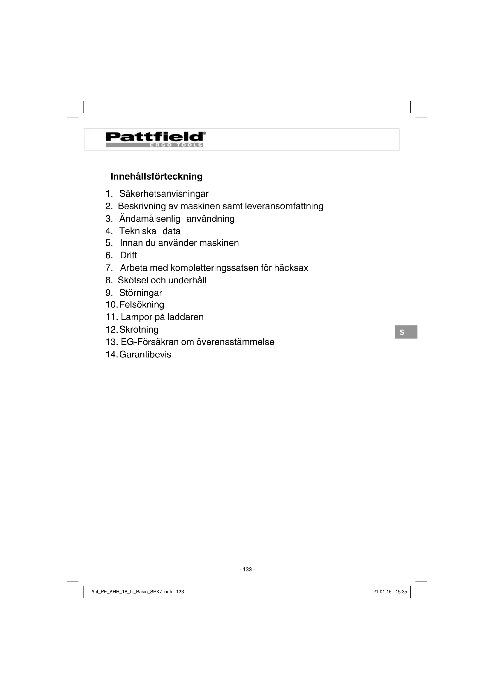 BRUKSANVISNING PE-AHH 18 Li Basic Pattfield