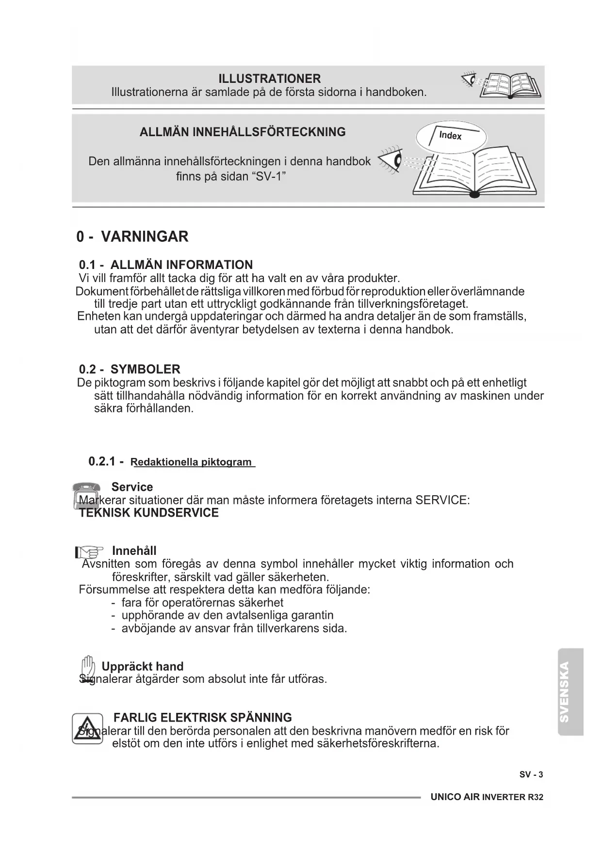 Den allmänna innehållsförteckningen i denna handbok nnspåsidan“SV-1” ILLUSTRATIONER Illustrationerna är samlade på de första sidorna i handboken.SV - 4 SVENSKA