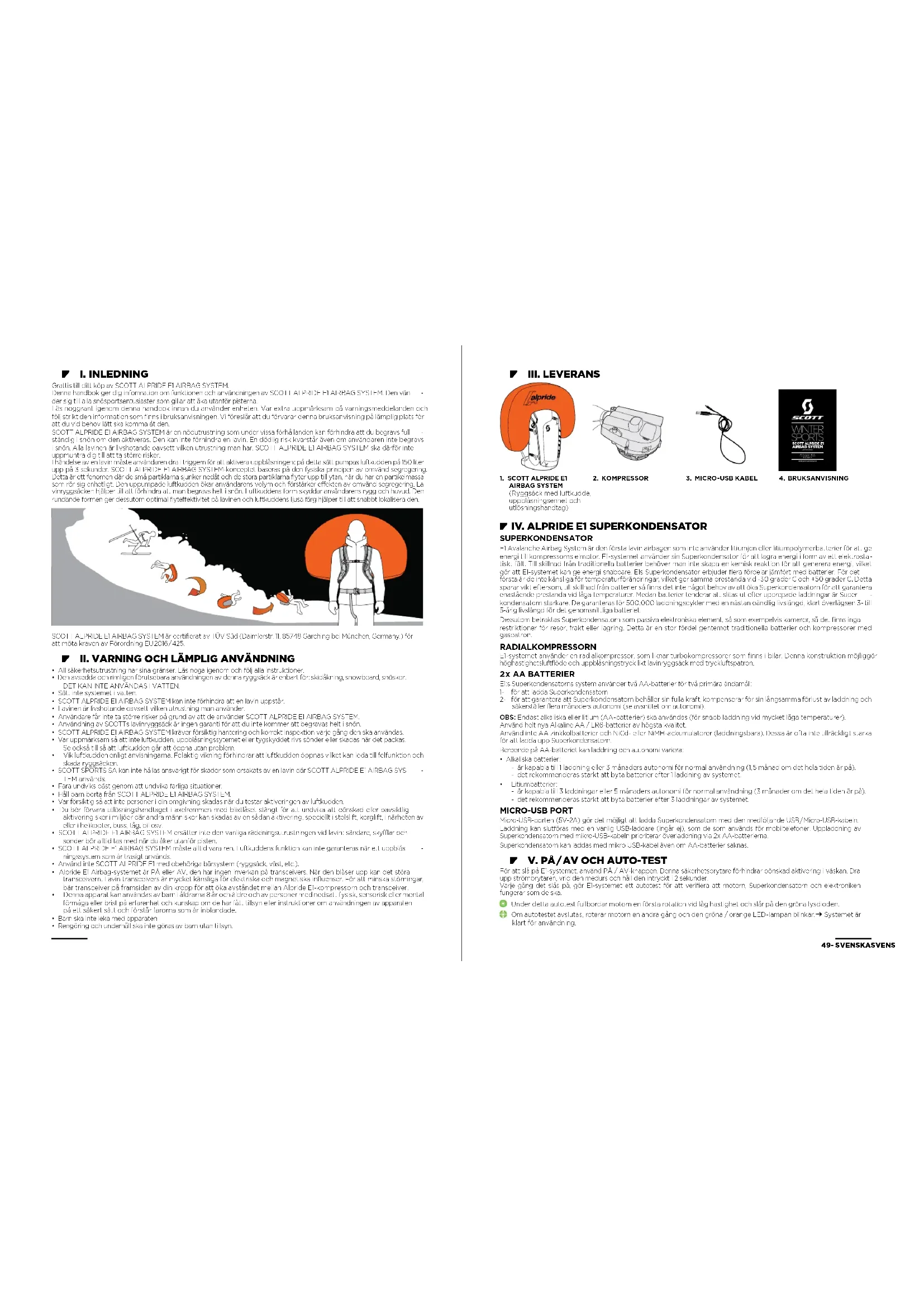 - I. INLEDNING Grattis till ditt köp av SCOTT ALPRIDE E1 AIRBAG SYSTEM. Denna handbok ger dig information om funktionen och användningen av SCOTT ALPRIDE E1 AIRBAG SYSTEM. Den vän