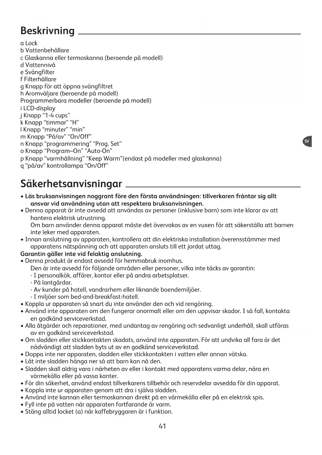 - Filterhållaren kan diskas i diskmaskin.