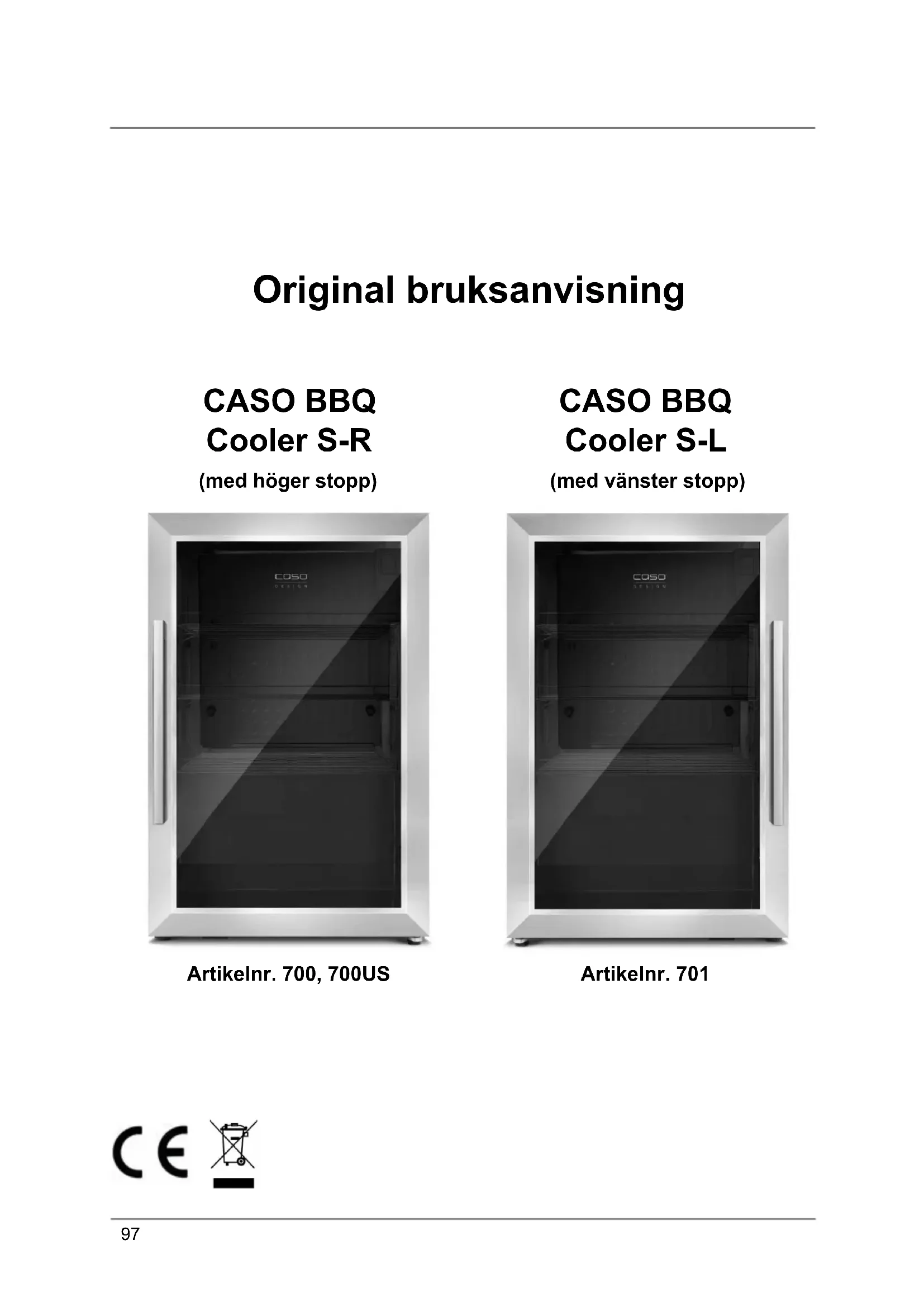 Original bruksanvisning CASO BBQ Cooler S-R (med höger stopp) Artikelnr. 700, 700US