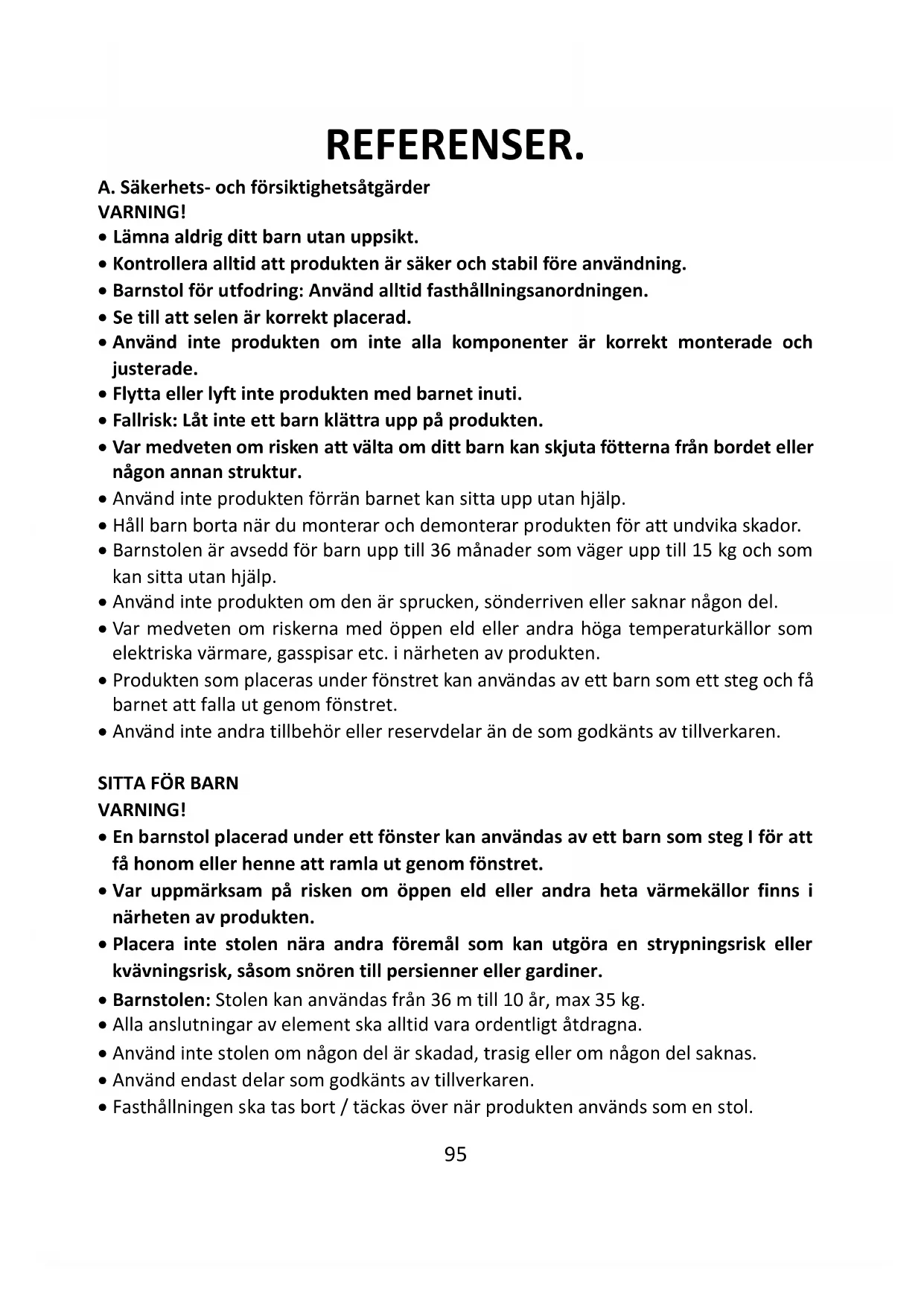 - Fasthållningen ska tas bort / täckas över när produkten används som en stol.96