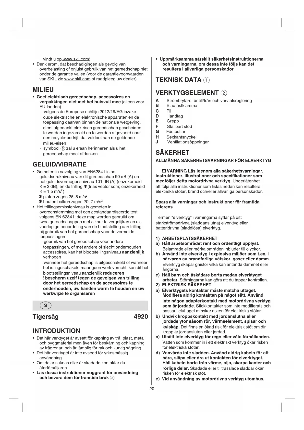 Ladda ner instruktionerna för din Såg i PDF-format gratis! Hitta din manual 4920 - SKIL och ta tillbaka ditt elektroniska enhet i hand. På denna sida publiceras alla dokument som behövs för att använda din enhet. 4920 av märket SKIL.