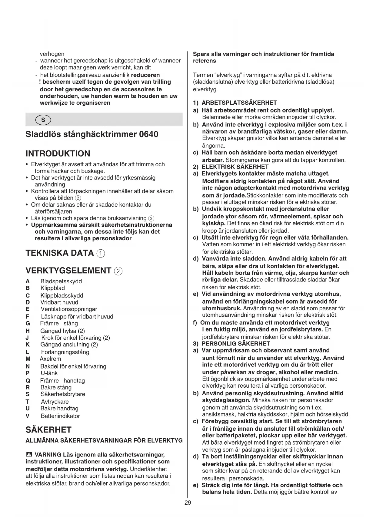 Sladdlös stånghäcktrimmer 0640 INTRODUKTION