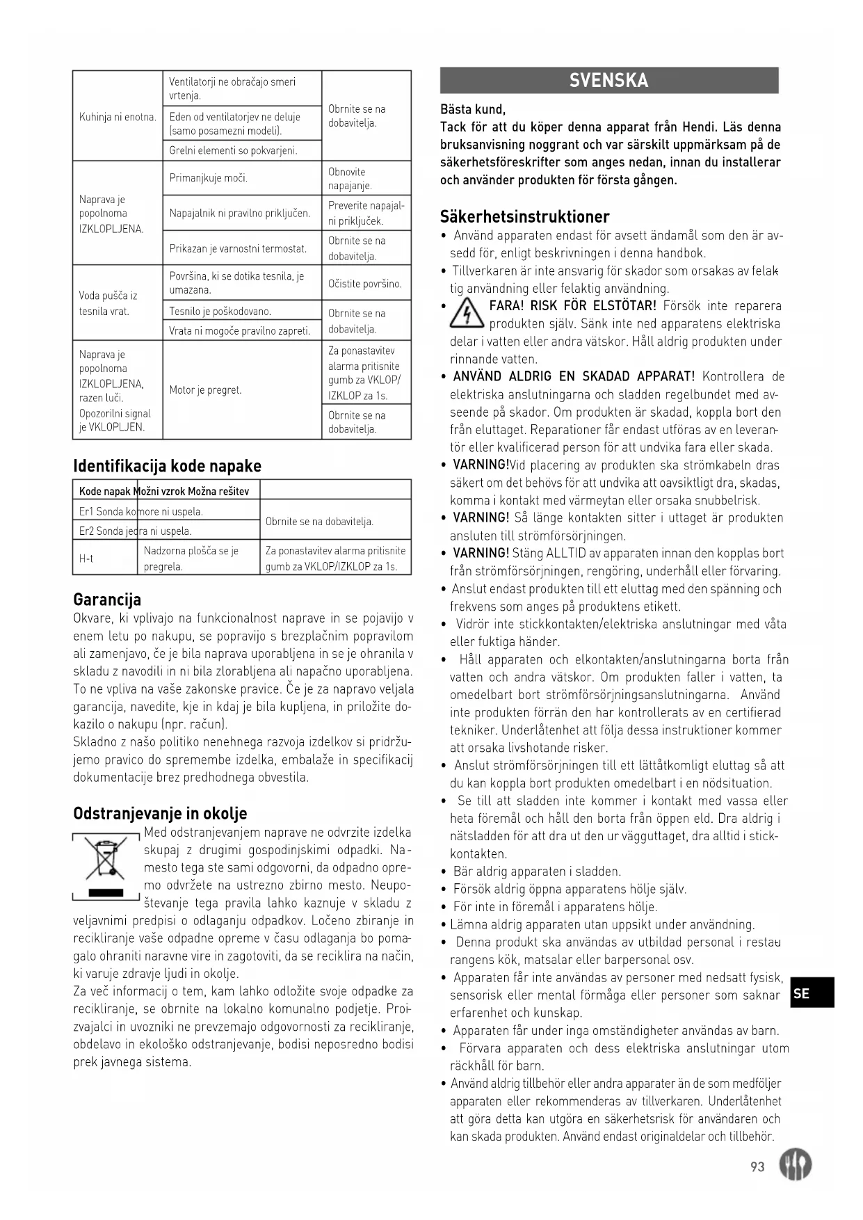 zvajalci in uvozniki ne prevzemajo odgovornosti za recikliranje, obdelavo in ekološko odstranjevanje, bodisi neposredno bodisi prek javnega sistema. SVENSKA Bästa kund, Tack för att du köper denna apparat från Hendi. Läs denna bruksanvisning noggrant och var särskilt uppmärksam på de säkerhetsföreskrifter som anges nedan, innan du installerar och använder produkten för första gången. Säkerhetsinstruktioner