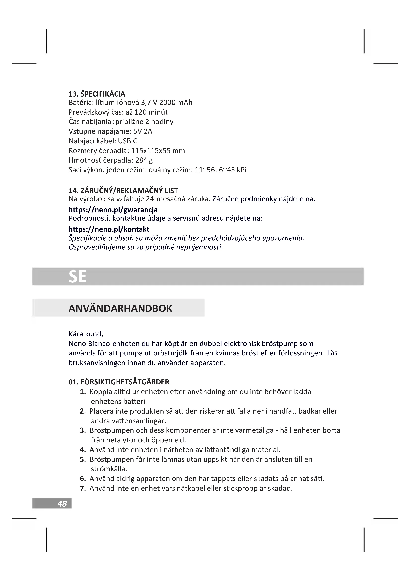 Produkten omfaas av en 24-månaders garan. Garanvillkoren hiar du på: hps://neno.pl/gwarancja Närmare upplysningar, kontaktuppgier och serviceadresser nns på: hps://neno.pl/kontakt Specikaoner och innehåll kan komma a ändras utan föregående meddelande. Vi ber om ursäkt för eventuella olägenheter.
