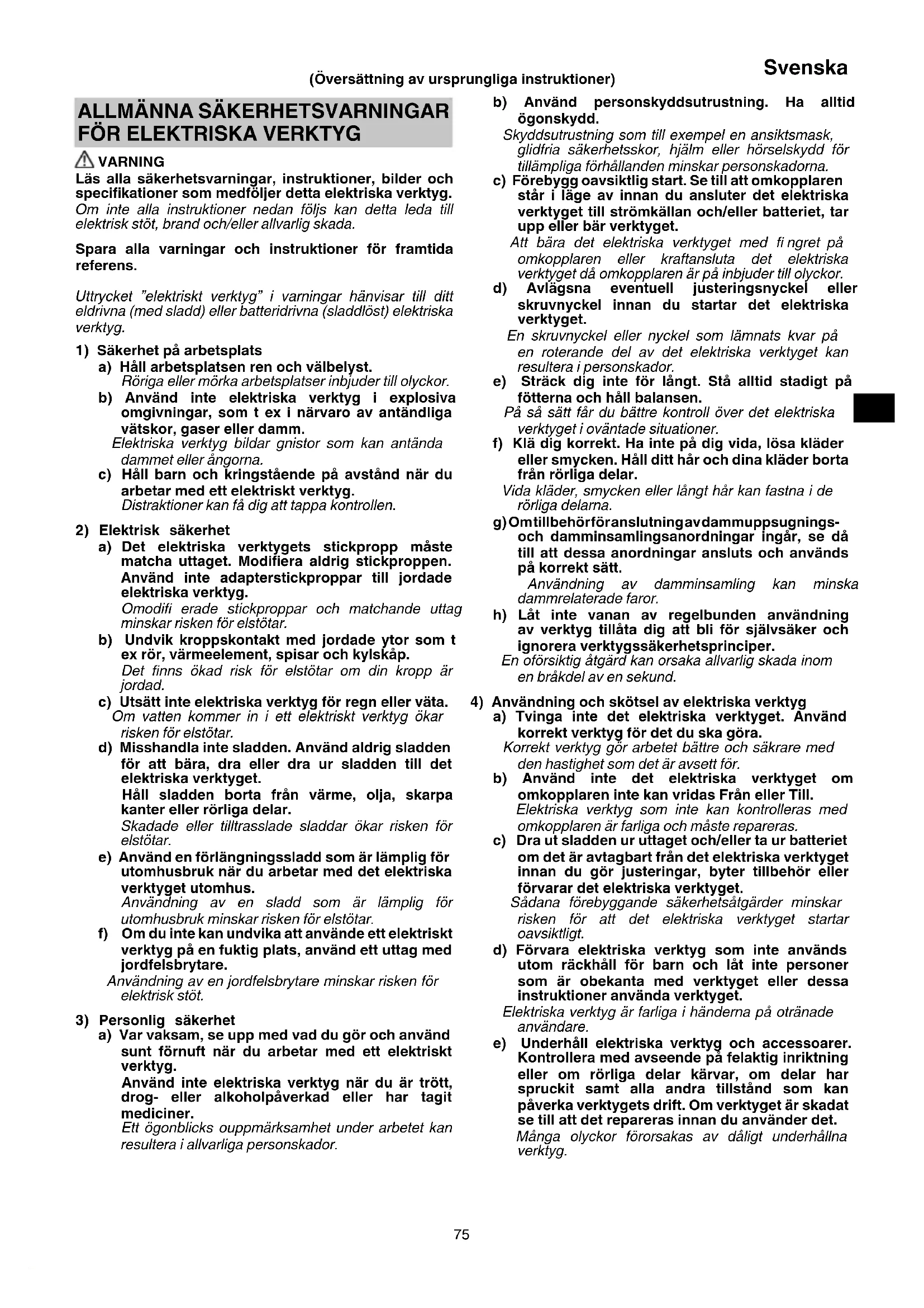 4) Användning och skötsel av elektriska verktyg