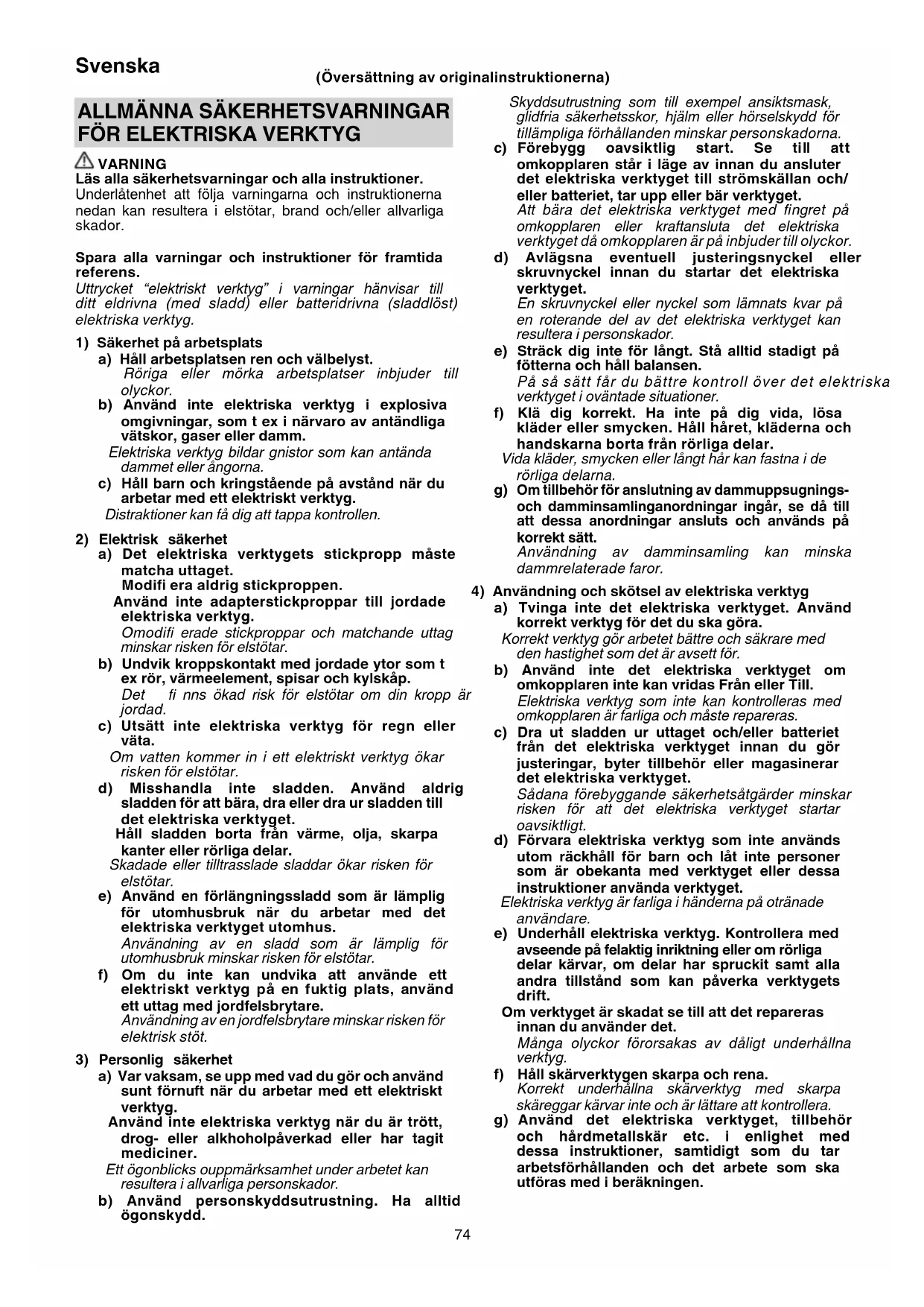 4) Användning och skötsel av elektriska verktyg