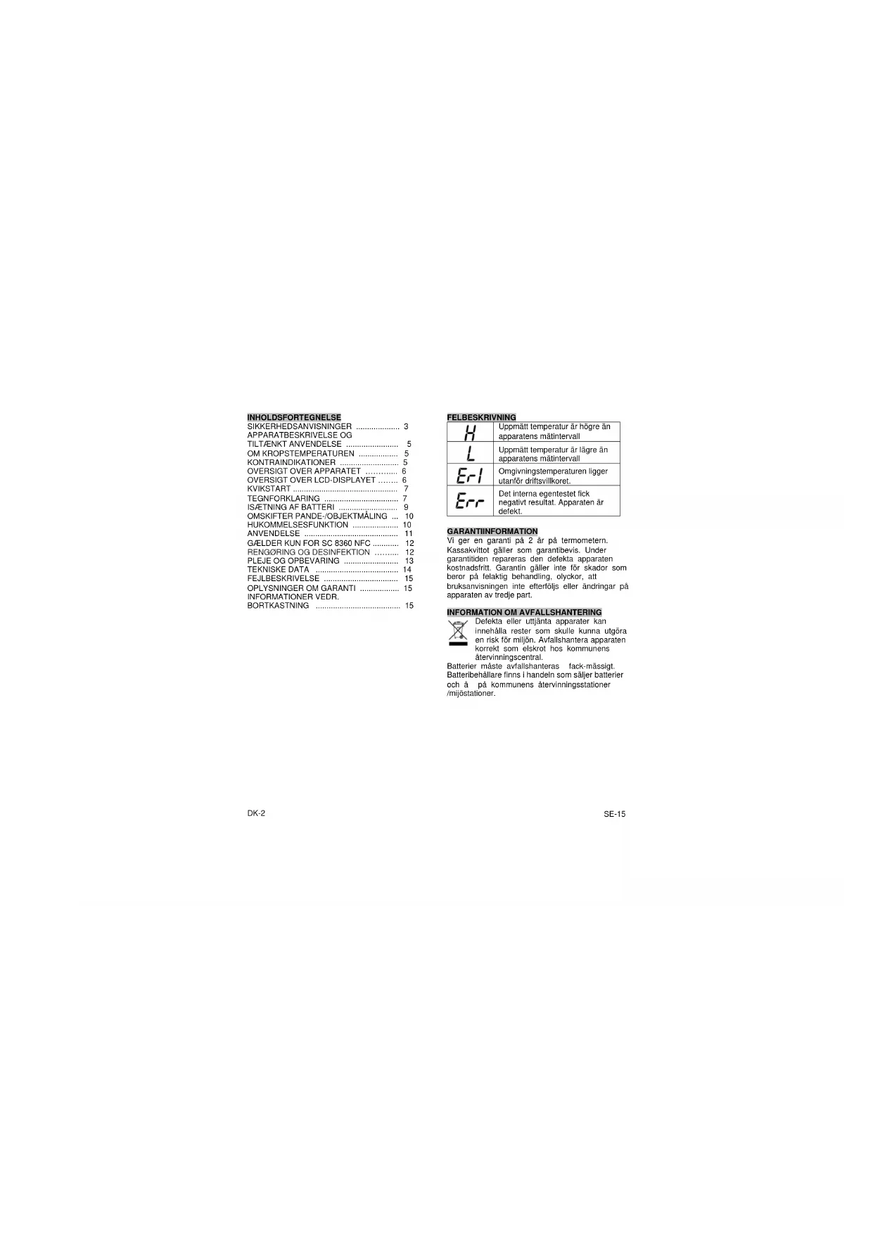 GARANTIINFORMATION Vi ger en garanti på 2 år på termometern. Kassakvittot gäller som garantibevis. Under garantitiden repareras den defekta apparaten kostnadsfritt. Garantin gäller inte för skador som beror på felaktig behandling, olyckor, att bruksanvisningen inte efterföljs eller ändringar på apparaten av tredje part.