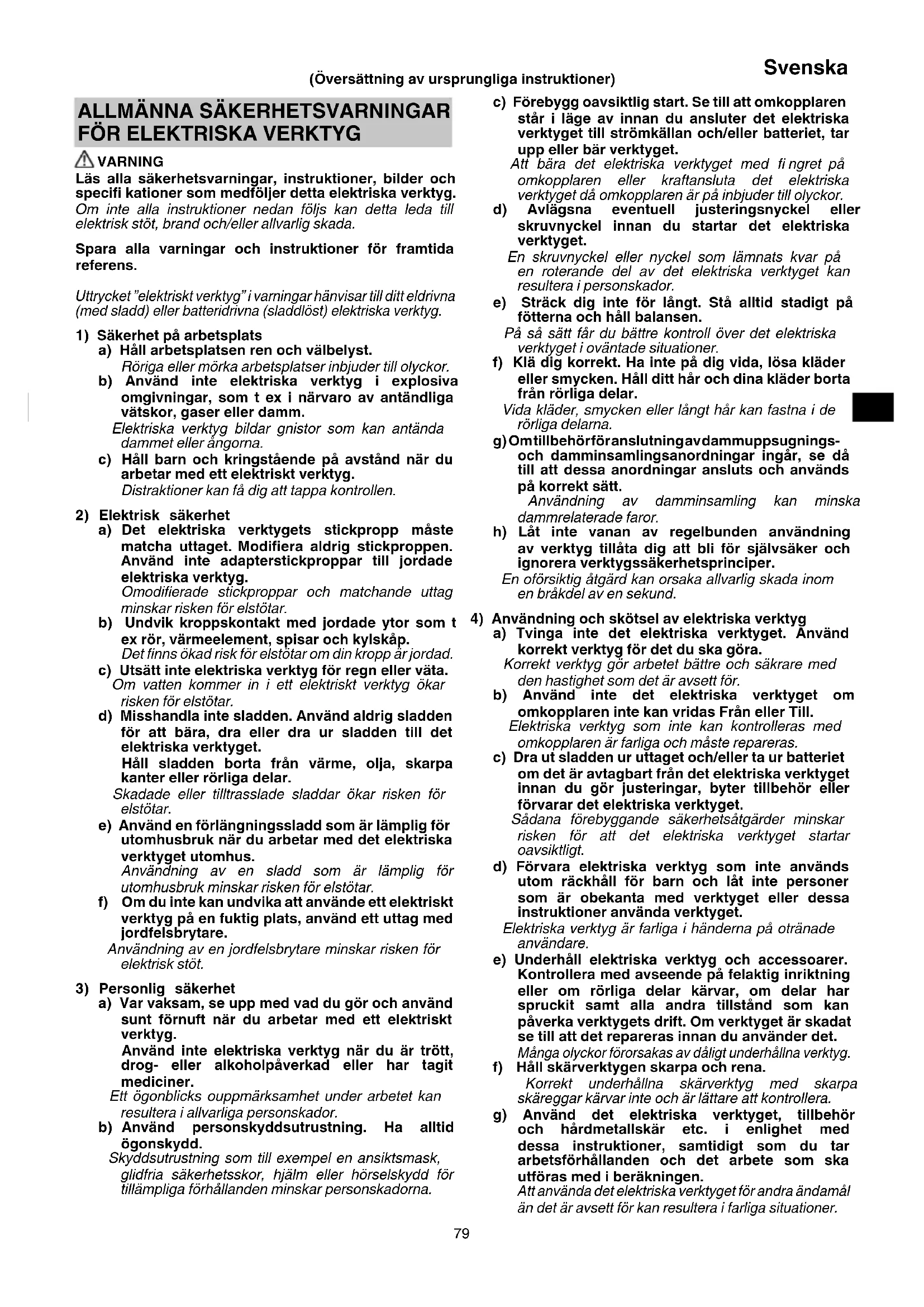 4) Användning och skötsel av elektriska verktyg
