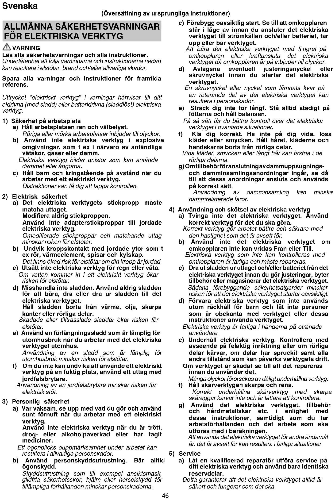 4) Användning och skötsel av elektriska verktyg