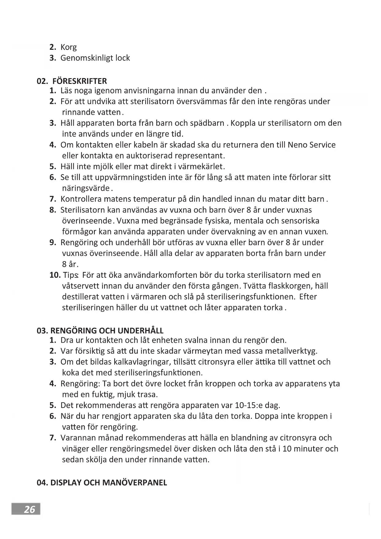 ANVÄNDARHANDBOK Kära kund, Tack för a du har köpt Neno Luna Steriliser och askvärmare. Läs igenom bruksa- nvisningen innan du använder den och spara den om du behöver använda den igen.