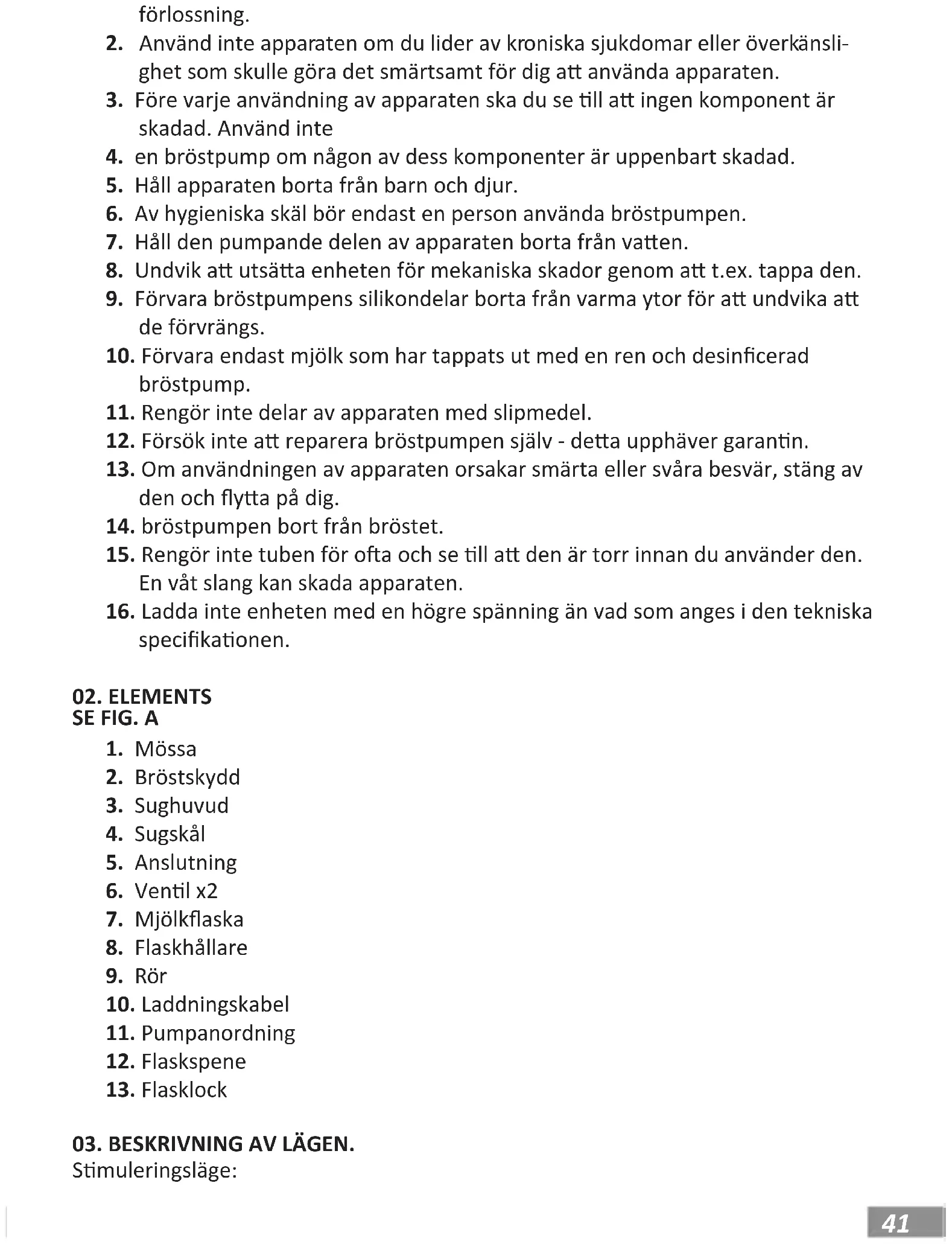 1. Bröstpumpen har e inbyggt baeri. För a skydda mot skador går enheten