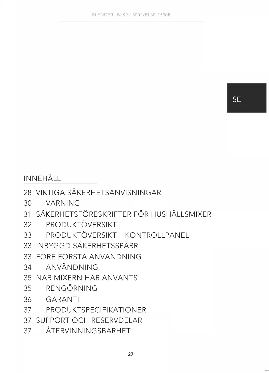 För support besök oss på wilfa.com och se vår kundservice-/supportsida. Här hittar du svar på vanliga frågor, reservdelar, tips och tricks och all vår kontaktinformation. ÅTERVINNINGSBARHET Denna märkning anger att produkten inte får kastas med vanligt hushållsavfall inom EU. För att förhindra skador på miljö och människor ska produkten lämnas in och återvinnas i enlighet med gällande miljöbestämmelser. Den uttjänta produkten kan lämnas på angivna återvinningsanläggningar eller lämnas till din lokala återförsäljare. Där kan du lämna produkten för miljövänlig återvinning gratis.38