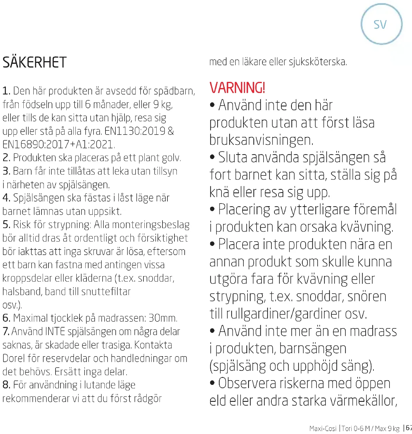 från födseln upp till 6 månader, eller 9 kg, eller tills de kan sitta utan hjälp, resa sig upp eller stå på alla fyra. EN1130:2019 & EN16890:2017+A1:2021.