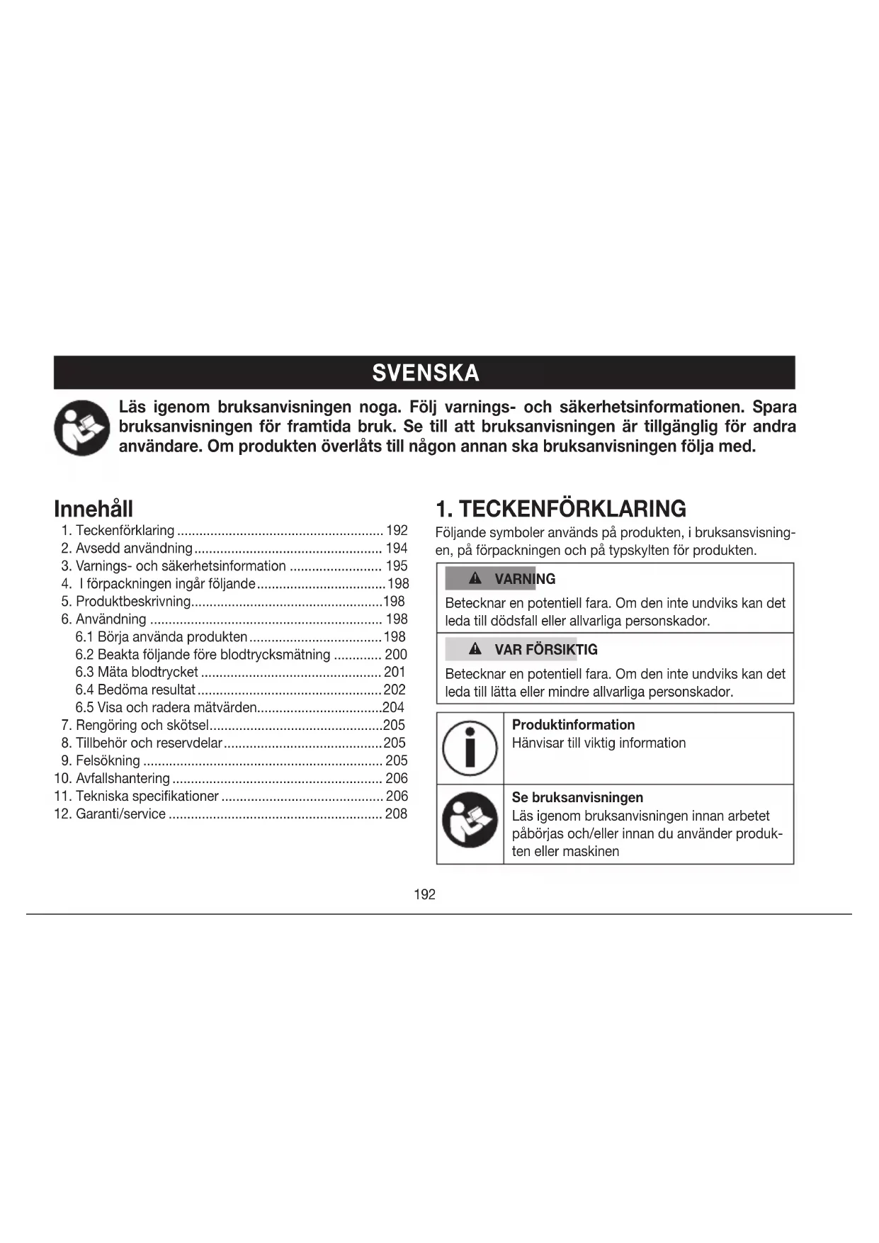 6.2 Beakta följande före blodtrycksmätning ............. 200