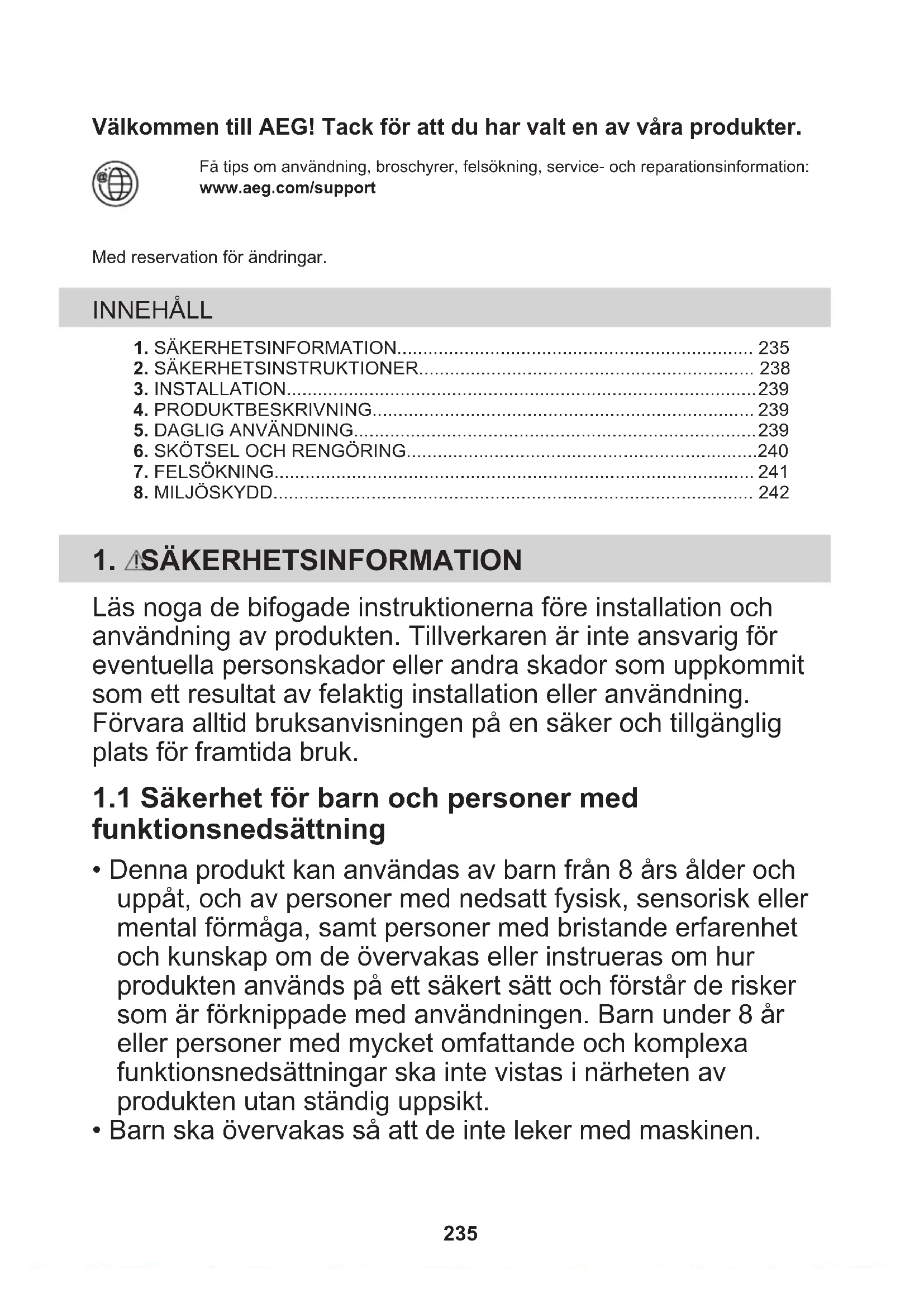1.1 Säkerhet för barn och personer med