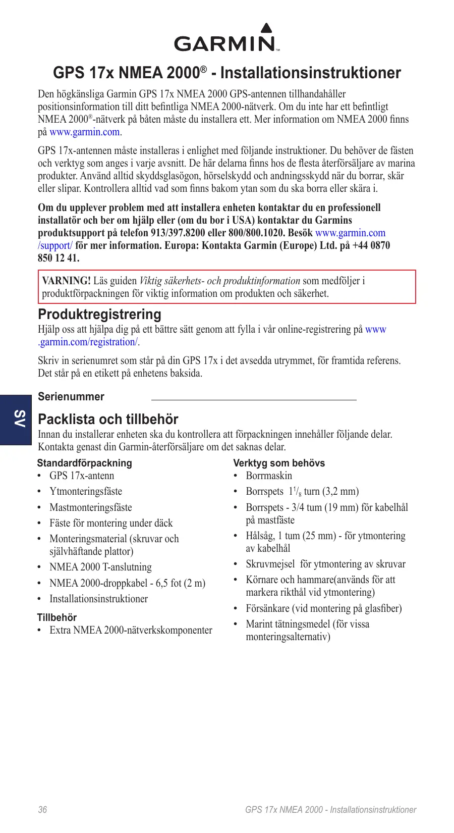 BRUKSANVISNING GPS 17X NMEA 2000 GARMIN