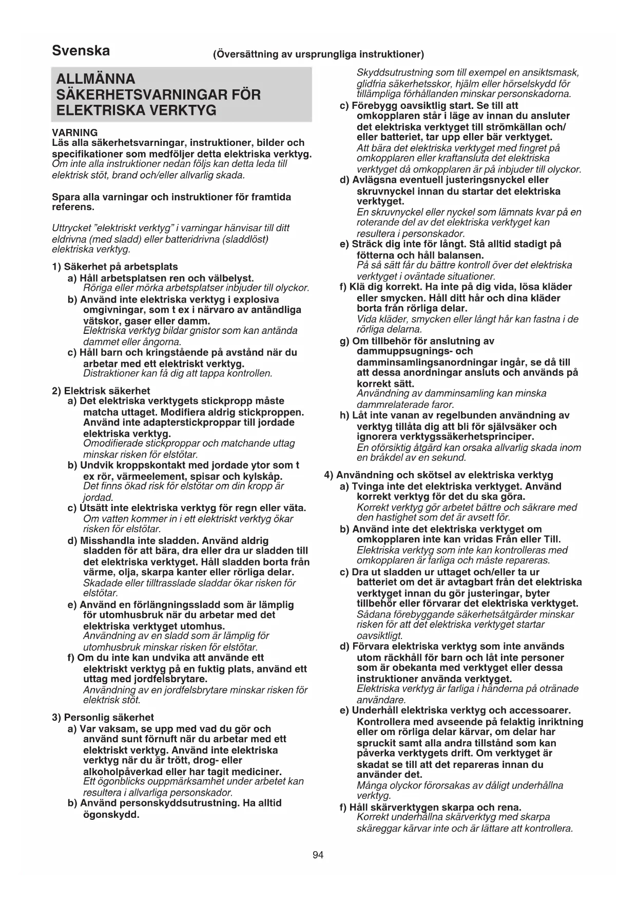 4) Användning och skötsel av elektriska verktyg