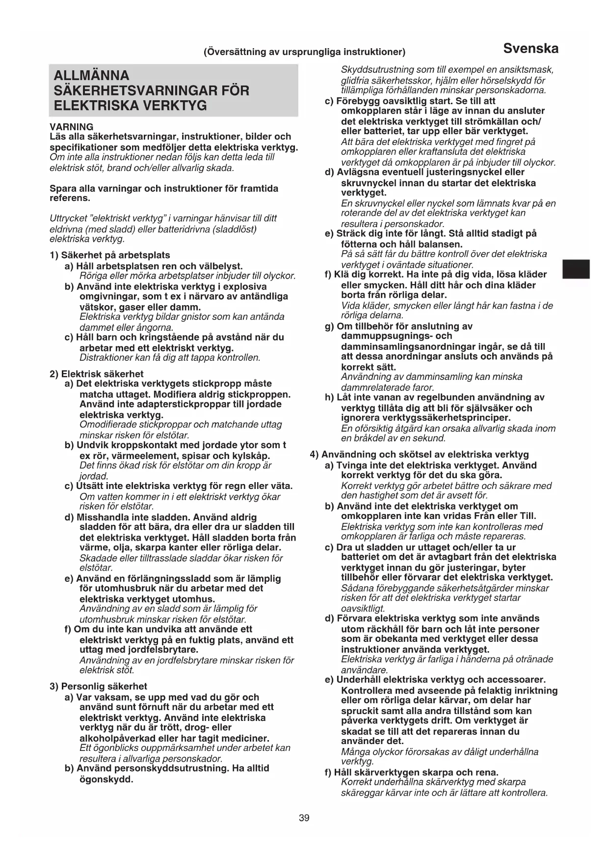 4) Användning och skötsel av elektriska verktyg
