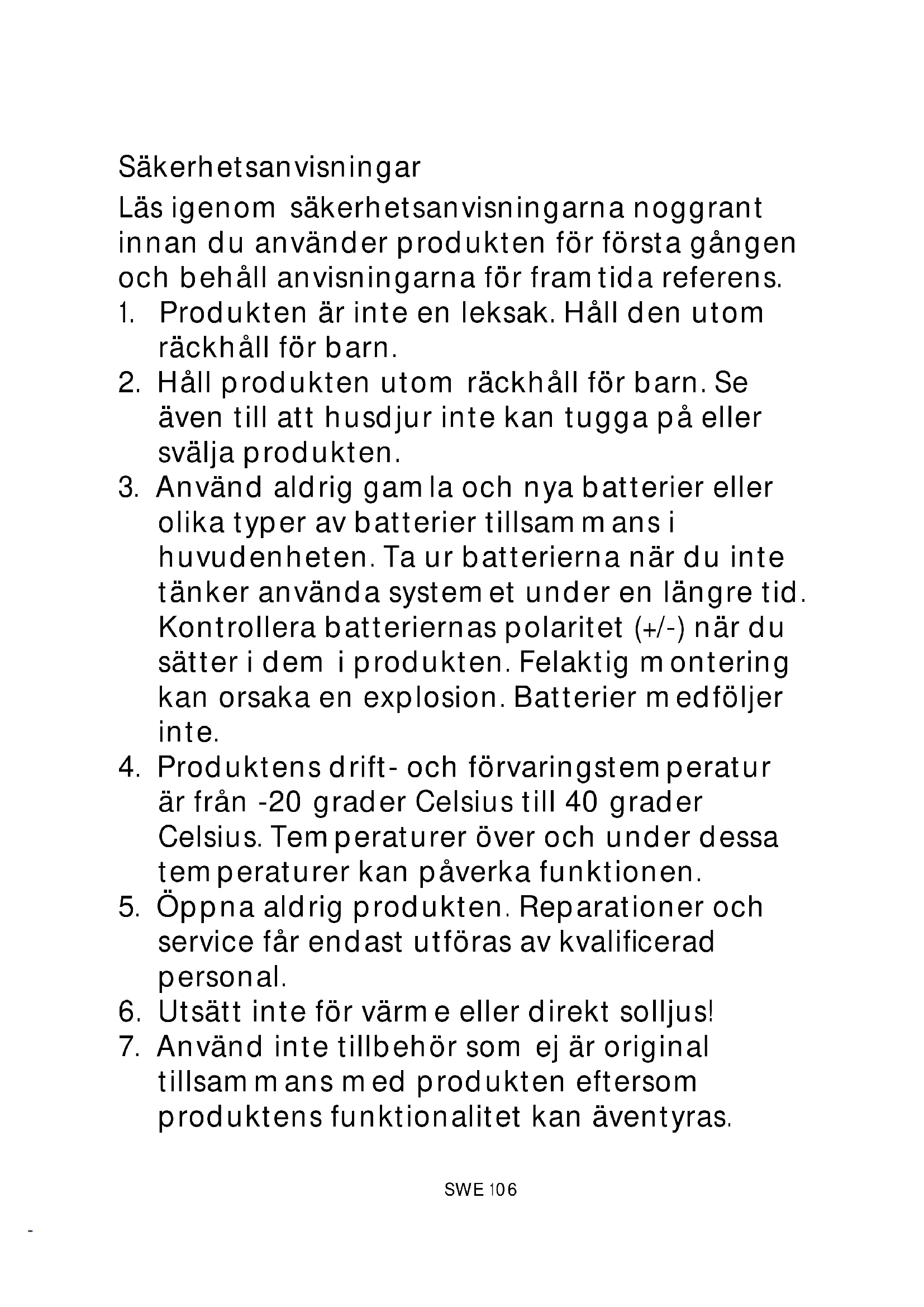1. Produkten är inte en leksak. Håll den utom