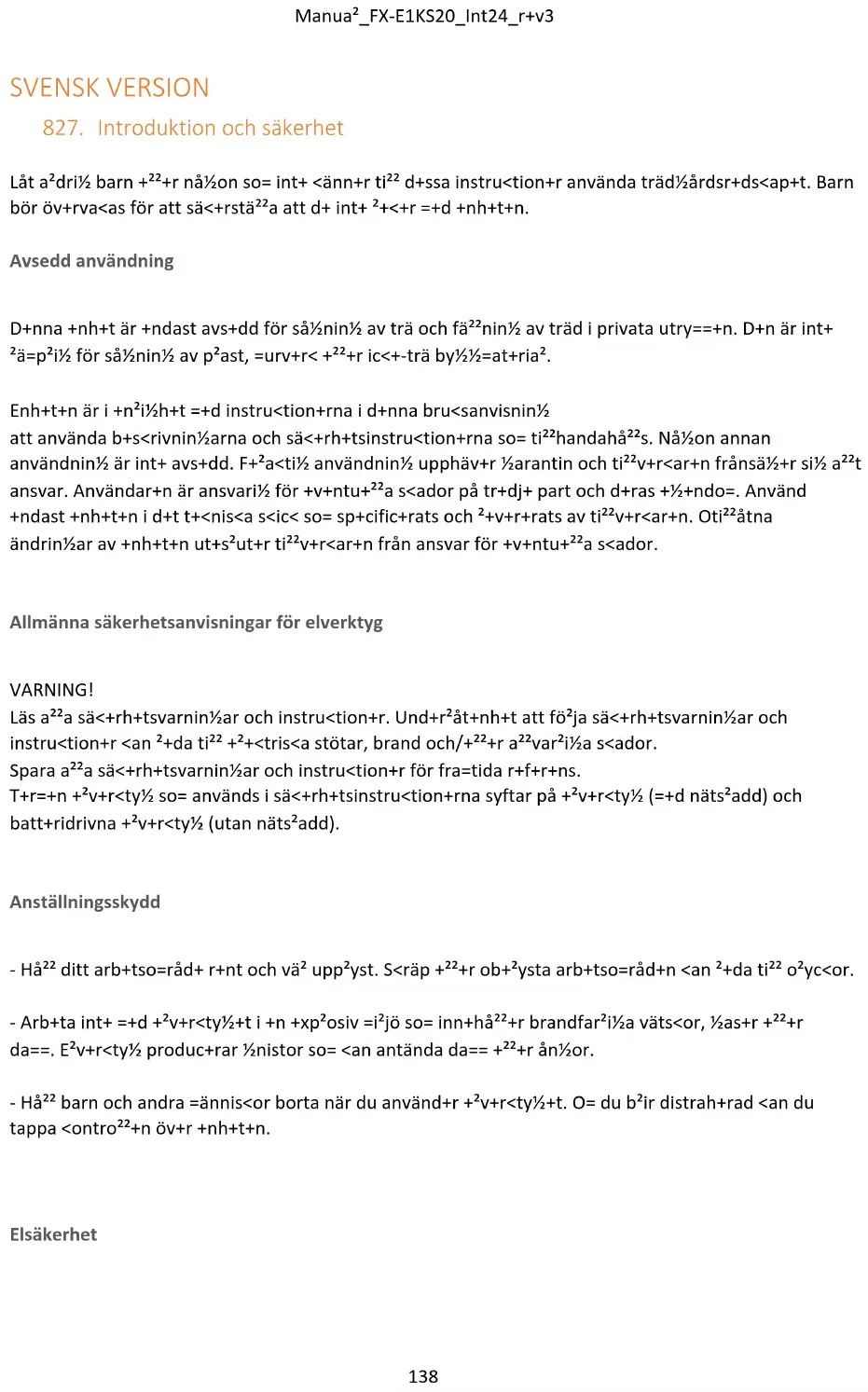 VARNA UNG! Gör gamla elverktyg oanvändbara före kassering: nätdrivna elverktyg genom att ta ur anslutningskontakten,Manual_FX-E1KS20_Int24_rev3