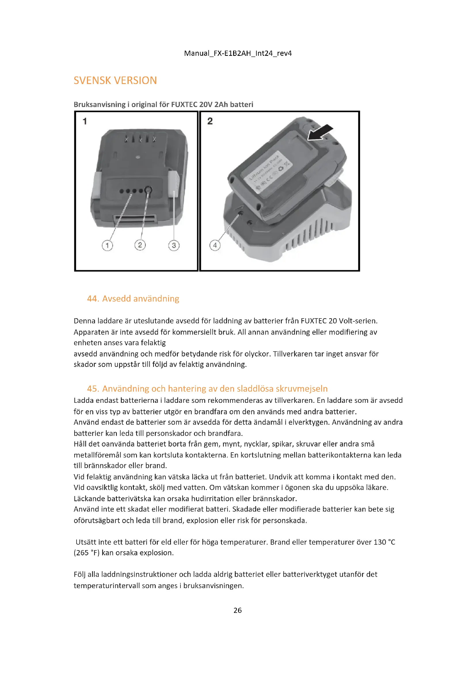 SVENSK VERSION Bruksanvisning i original för FUXTEC 20V 2Ah batteri