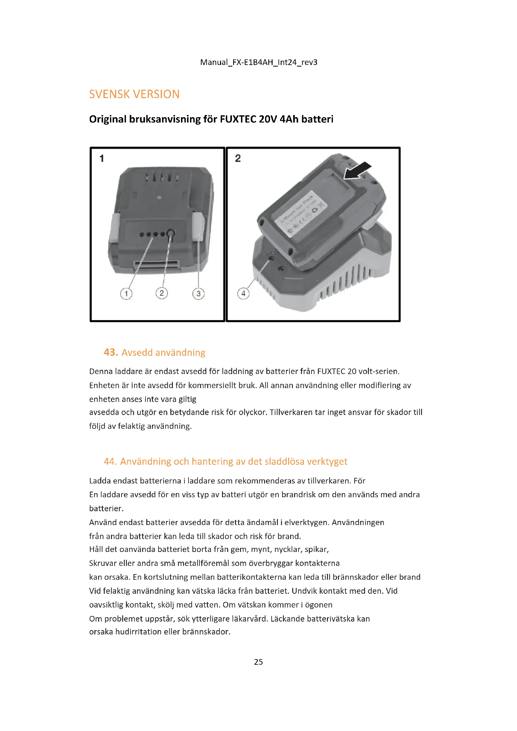 SVENSK VERSION Original bruksanvisning för FUXTEC 20V 4Ah batteri