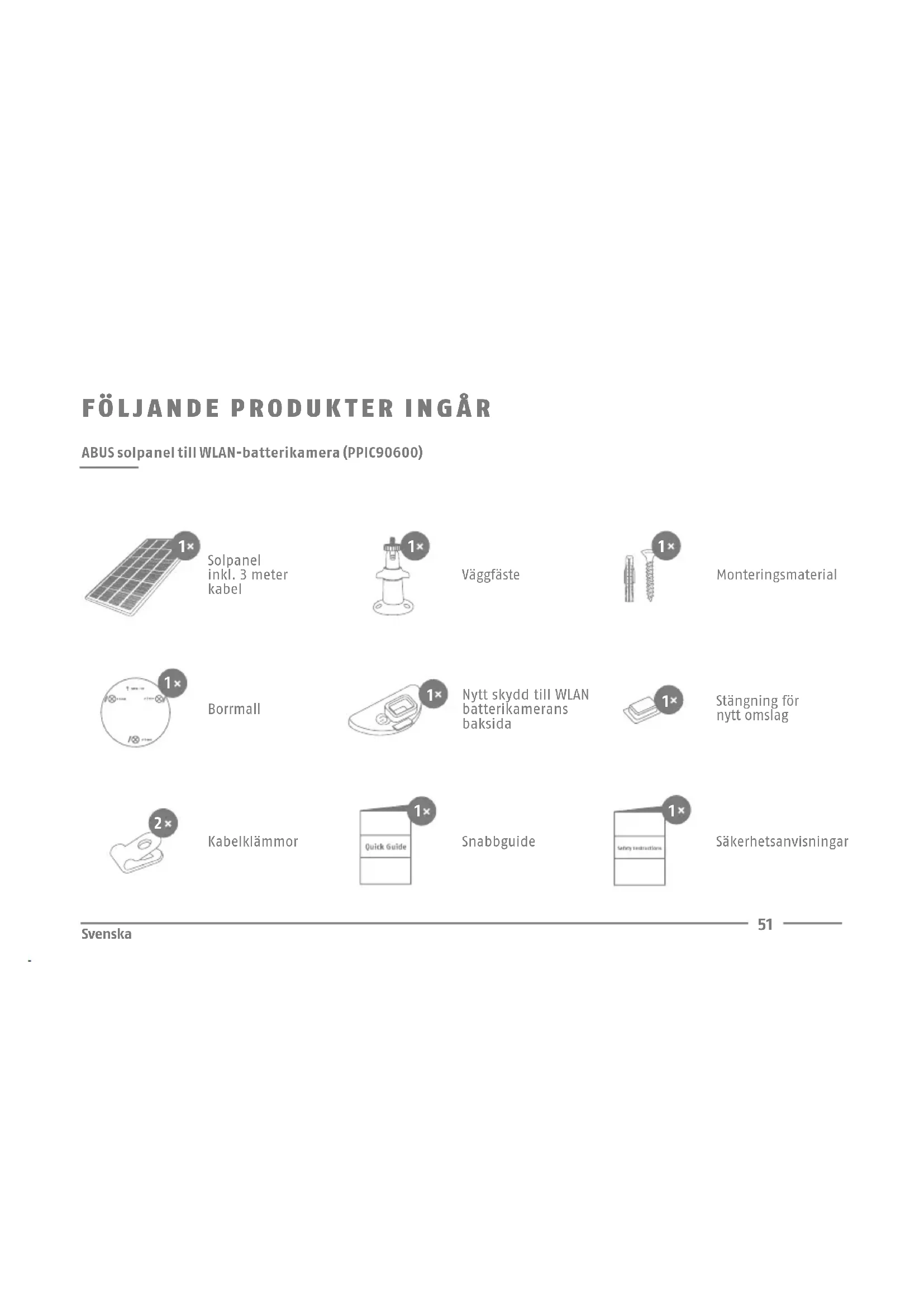 - Information om ABUS WLAN Akku Cam med basstation nns i kamerans bruksanvisning. För dri med solpanel ska du säkerställa följande: