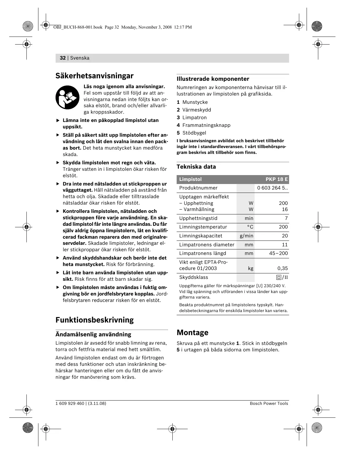 PKP 18 E - REV 11-2008 - Pistolet à colle BOSCH - Notice d'utilisation et mode d'emploi gratuit
