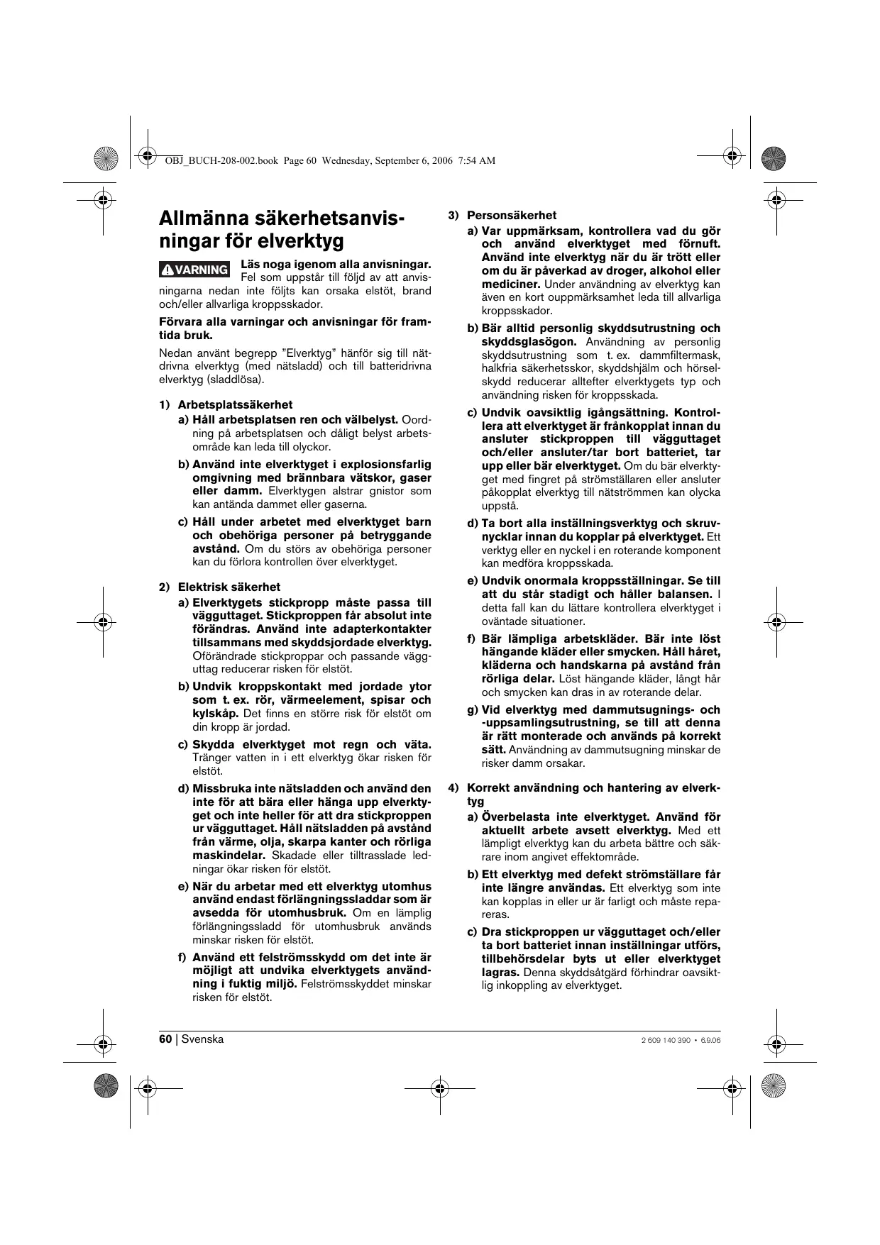 4) Korrekt användning och hantering av elverktyg