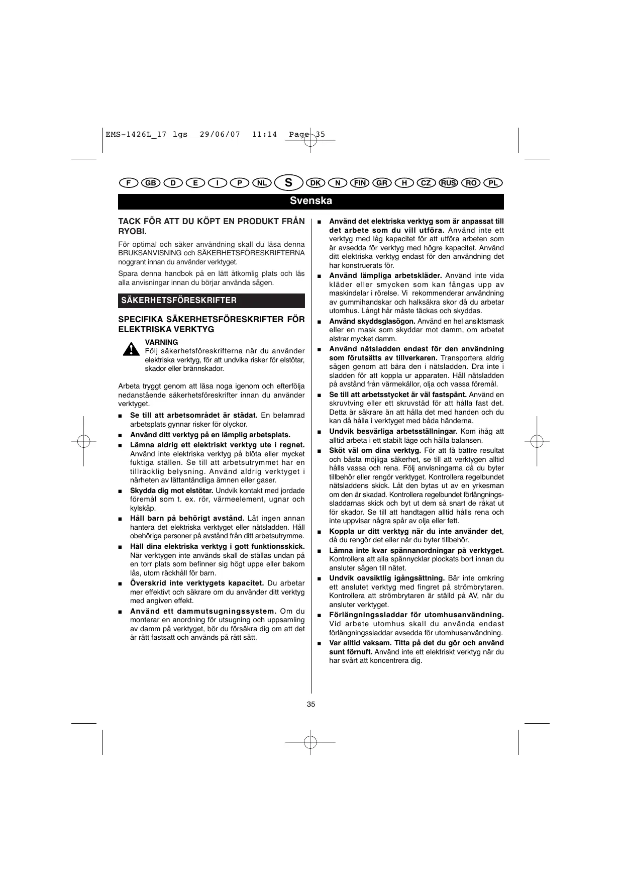 EMS-1426L - Elverktyg RYOBI - Gratis bruksanvisning och manual