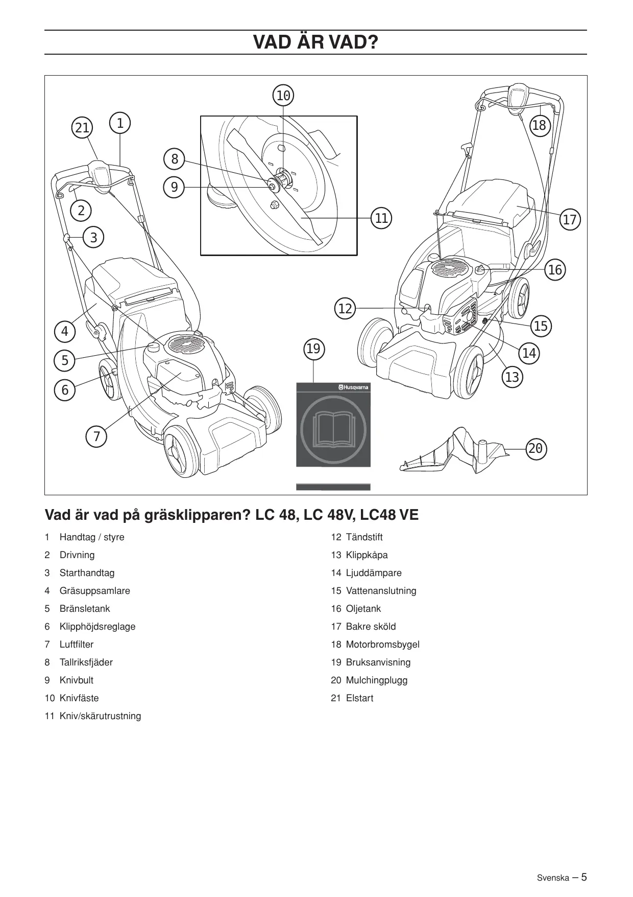 Vad är vad på gräsklipparen? LB 48, LB 48V