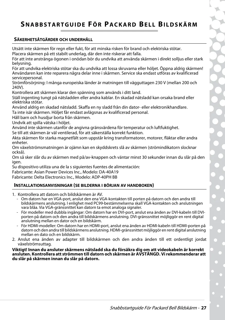 BRUKSANVISNING MAESTRO 230 PACKARD BELL