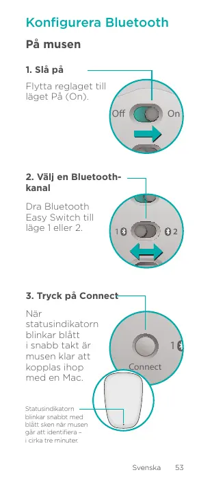 Bluetooth Easy-Switch vers le canal inutilisé et appuyez sur Connect. Suivez à nouveau les instructions de la rubrique Configuration Bluetooth. Vous pouvez désormais passer d'un Mac à un autre en sélectionnant le canal Bluetooth correspondant utilisé pour le couplage avec la souris.