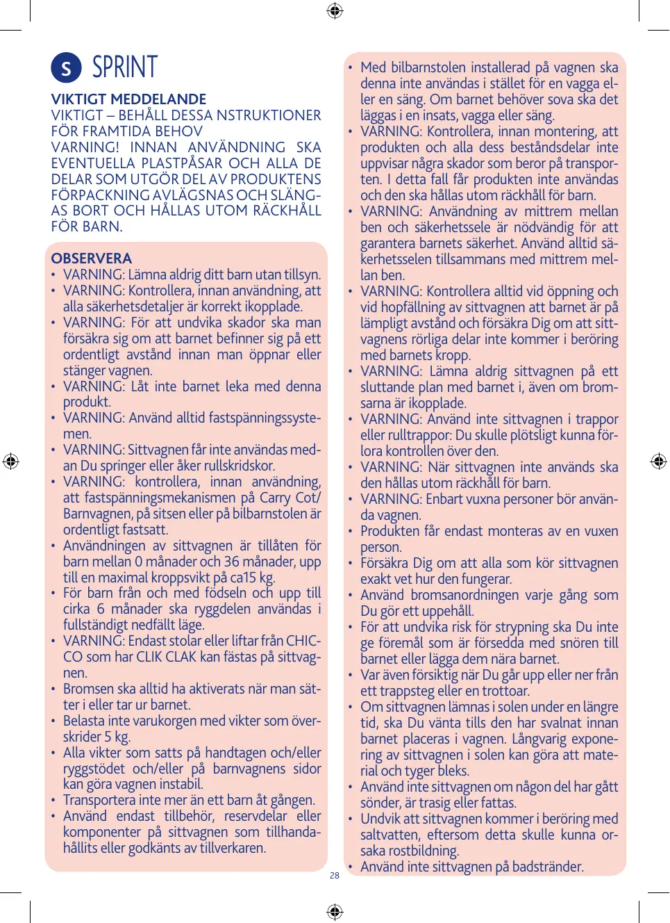 BRUKSANVISNING SPRINT CHICCO
