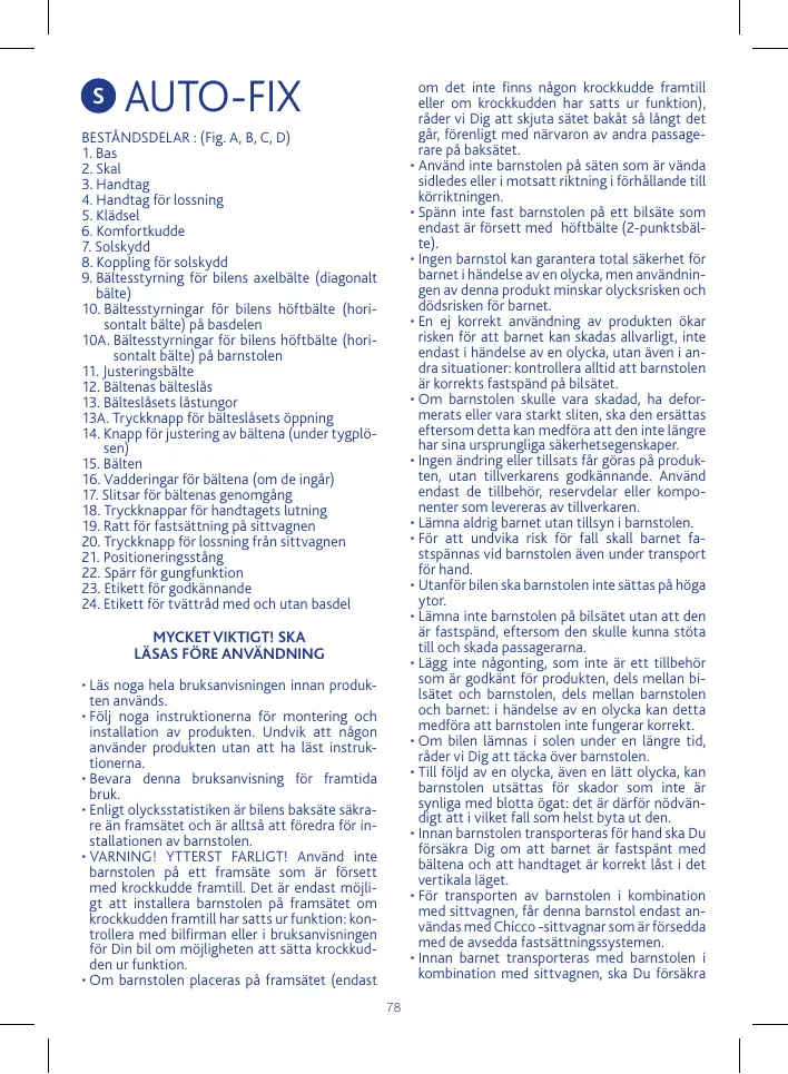 BRUKSANVISNING TRIO FOR ME AUTO-FIX CHICCO