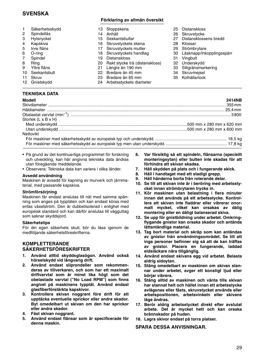 BRUKSANVISNING 2414NB MAKITA