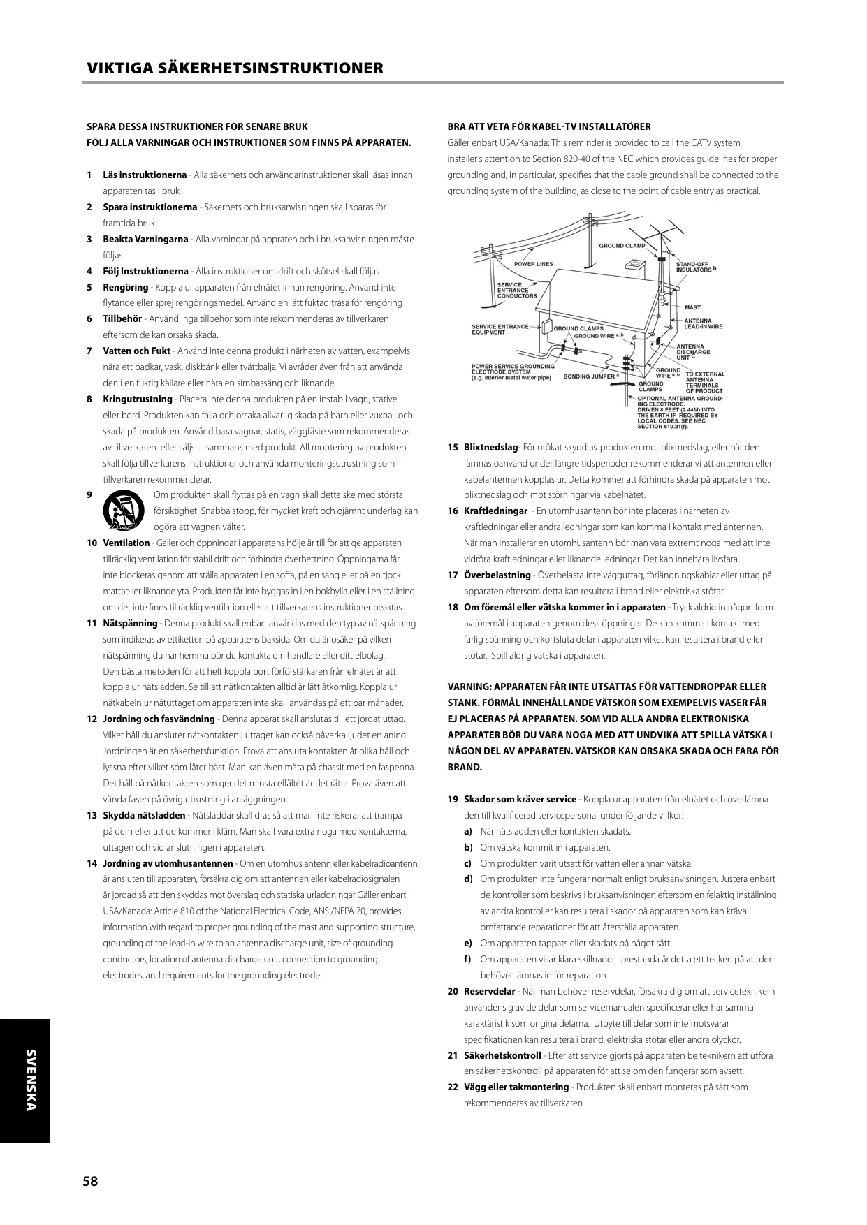 SVENSKA ATTENTION N’exposez pas la batterie ou la télécommande à une chaleur excessive, au feu ou similaire.