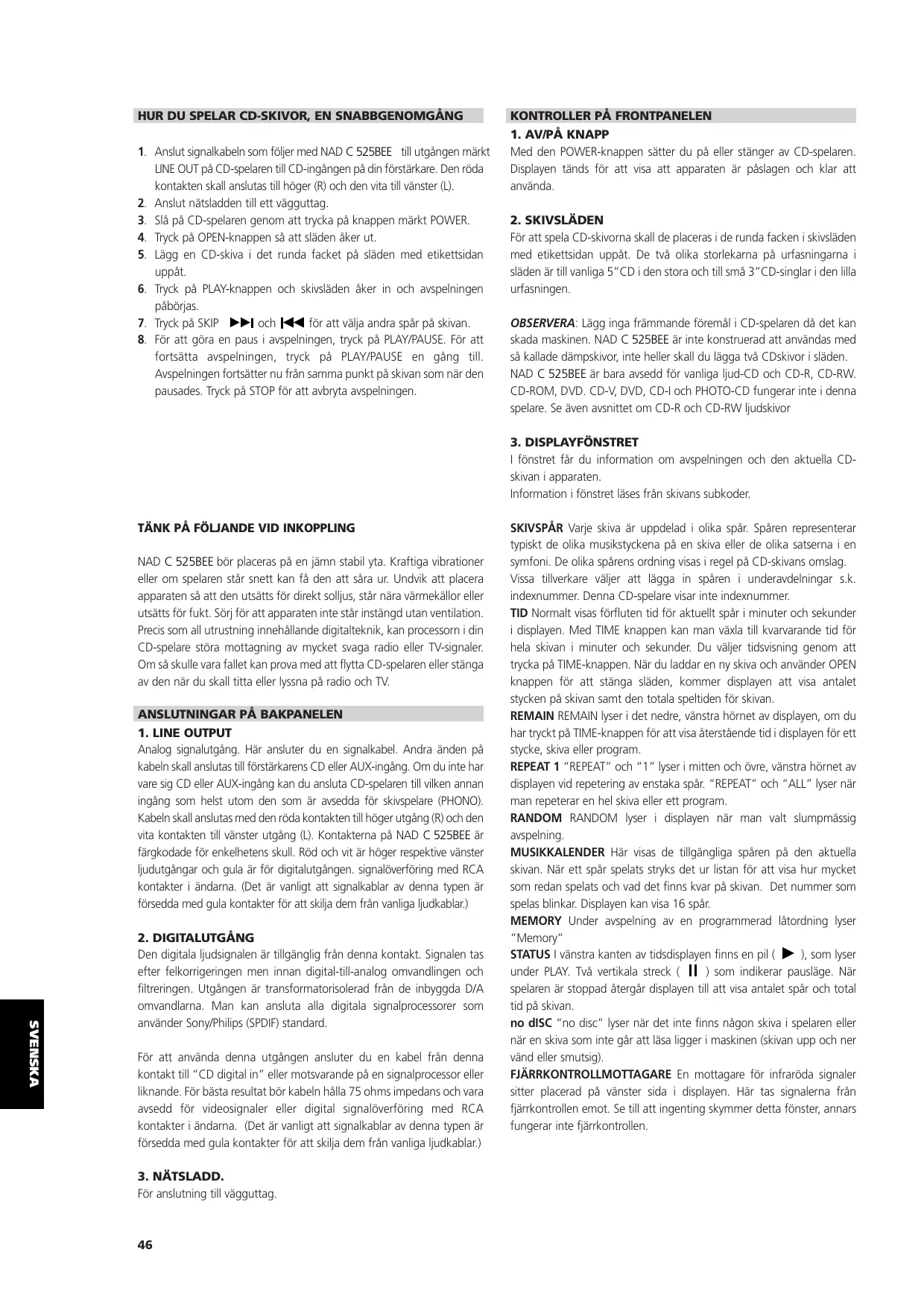 C525BEE - CD-spelare NAD - Notice d'utilisation et mode d'emploi gratuit