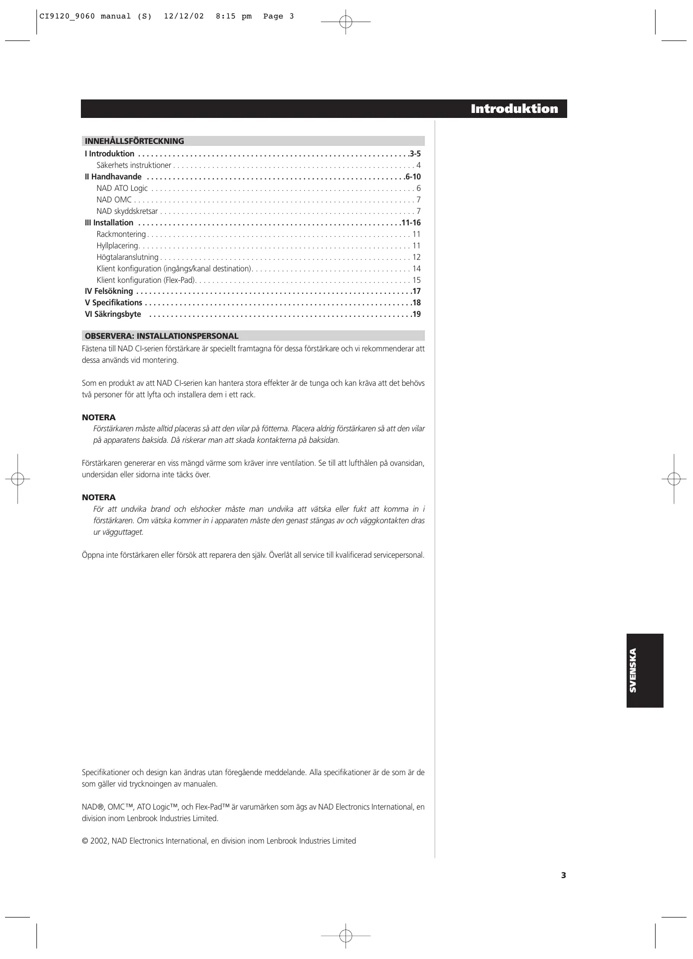 Téléchargez la notice de votre Ljudförstärkare au format PDF gratuitement ! Retrouvez votre notice CI9120 - NAD et reprennez votre appareil électronique en main. Sur cette page sont publiés tous les documents nécessaires à l'utilisation de votre appareil CI9120 de la marque NAD.