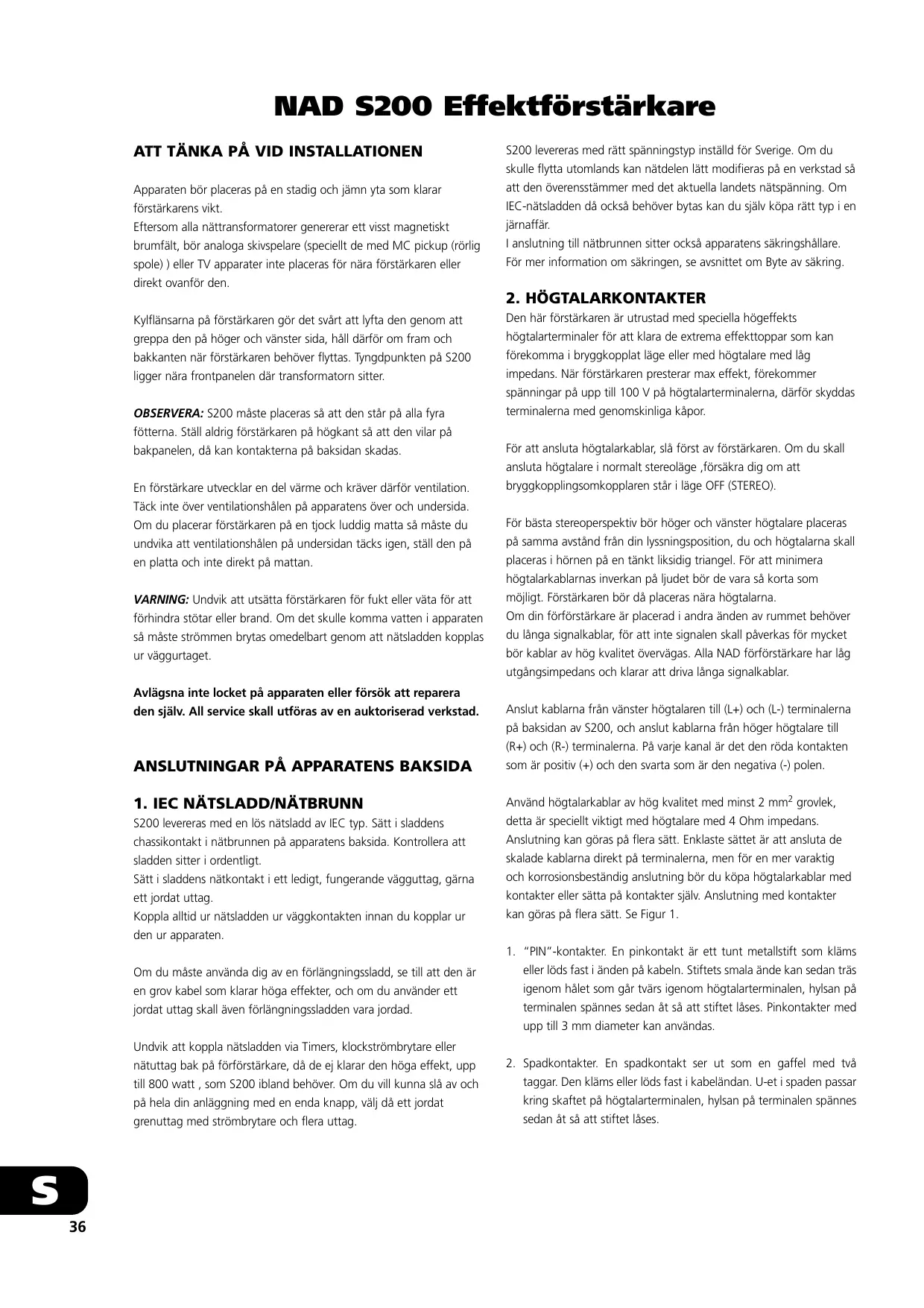 S200 - Effektförstärkare NAD - Gratis bruksanvisning och manual