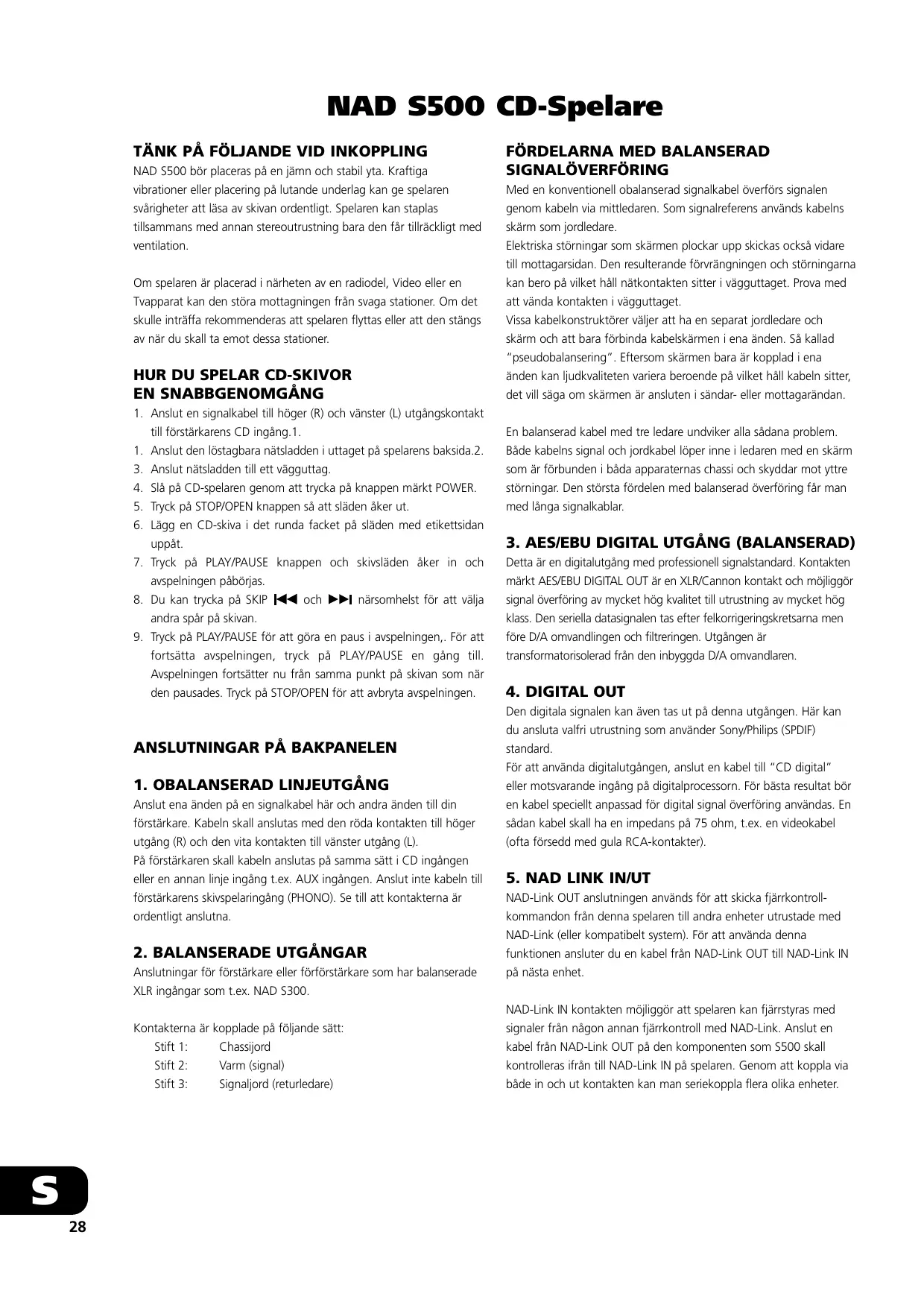 BRUKSANVISNING S500 NAD
