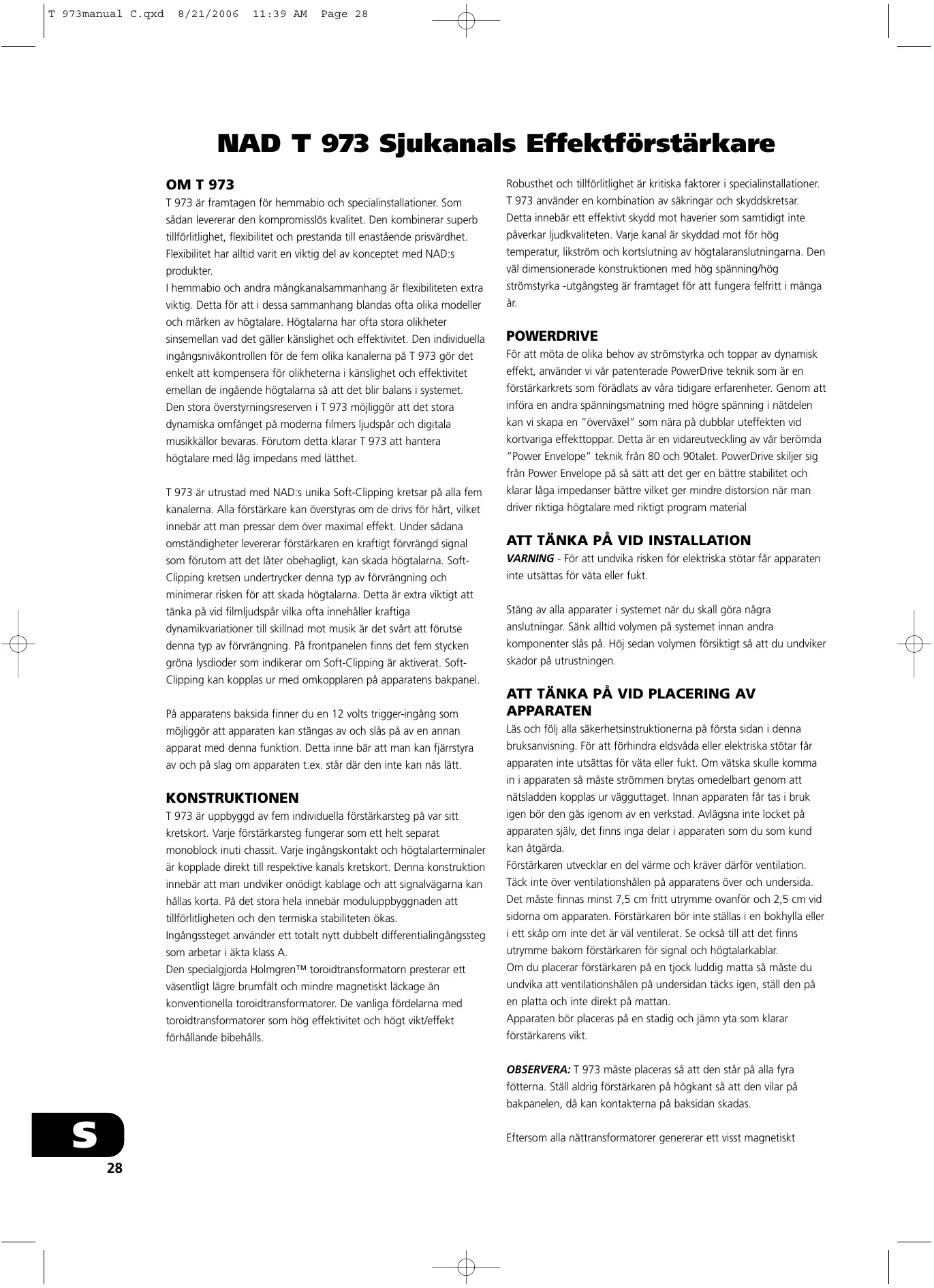 BRUKSANVISNING T973 NAD