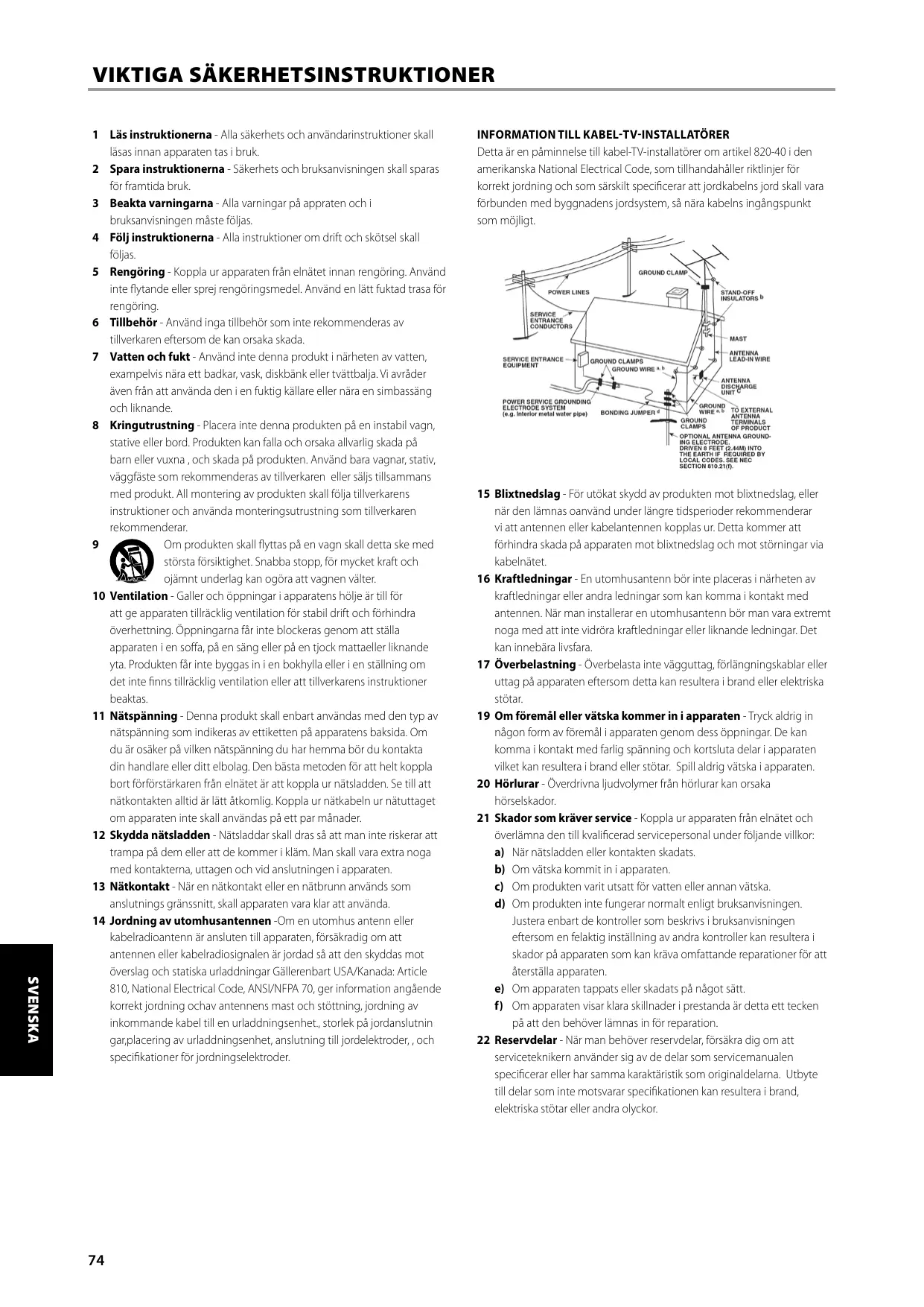 SVENSKA Ce produit a été fabriqué de manière à être conforme aux exigences concernant les interférences radio de la DIRECTIVE CEE 2004/108/EC.